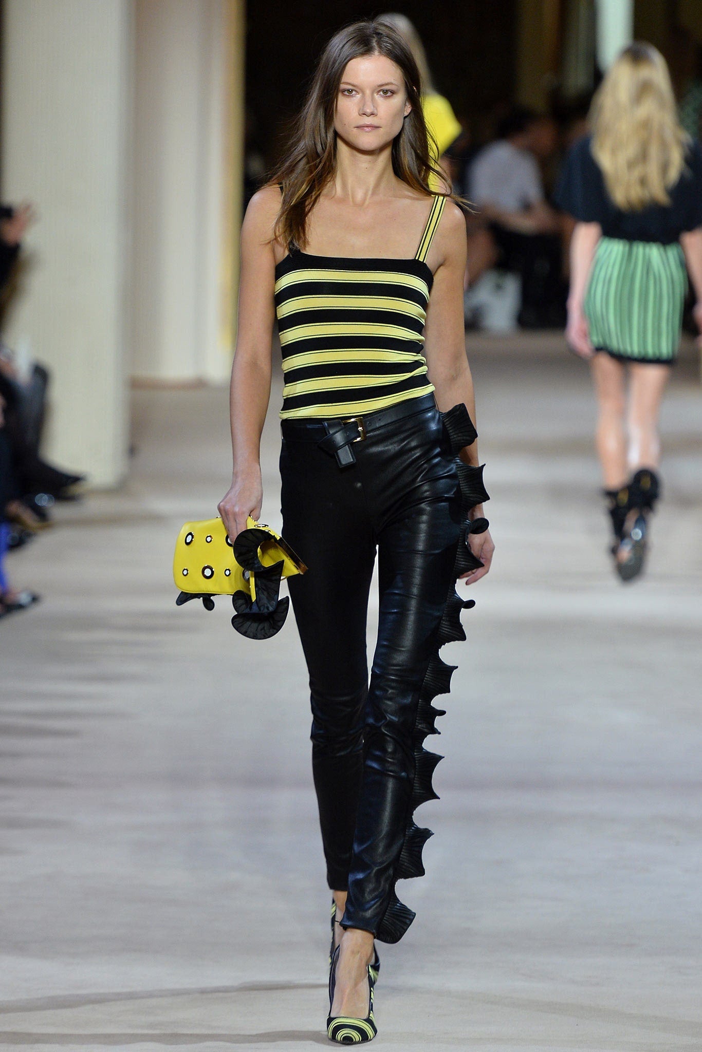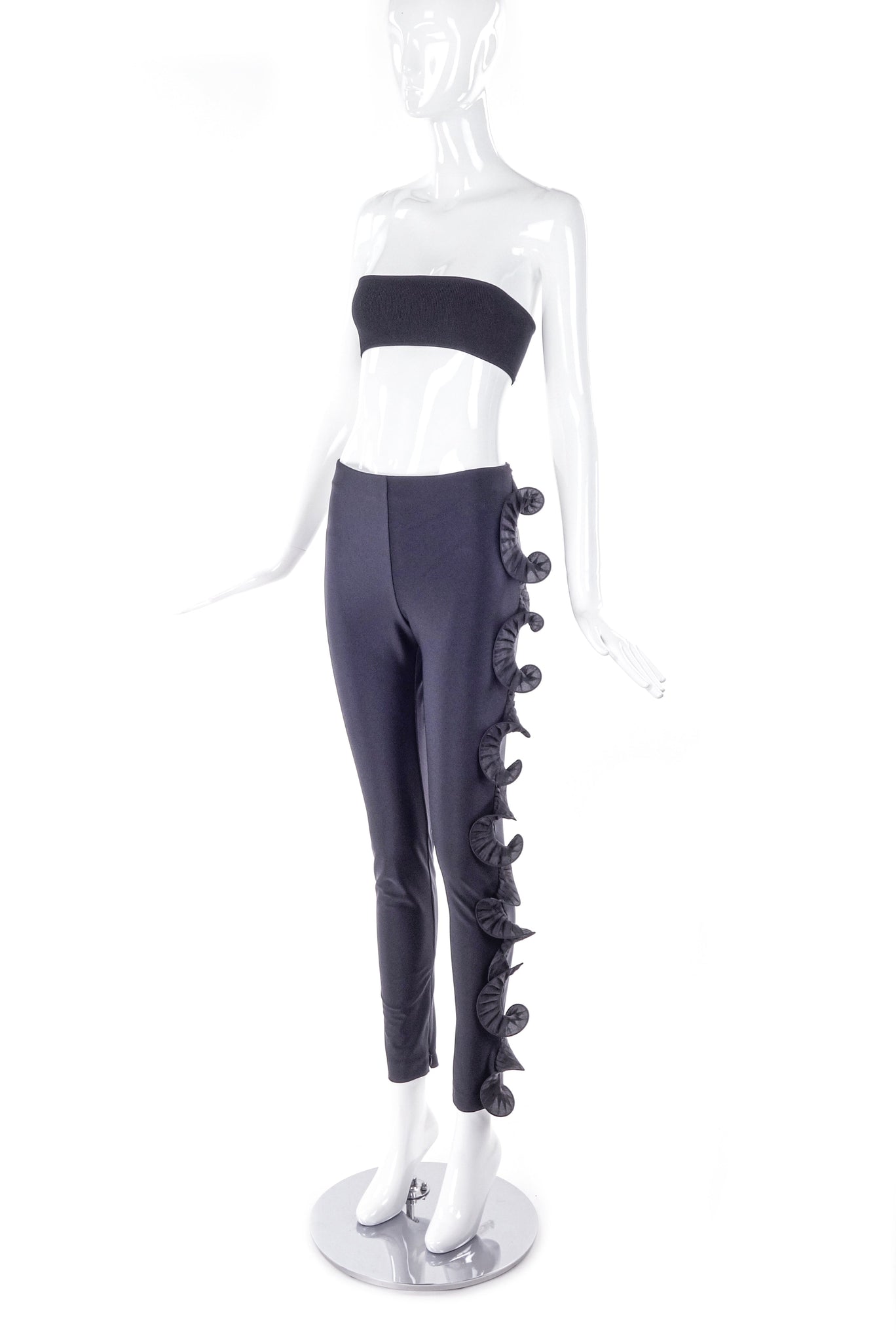 A pair of stretch pants with side ruffles from the Spring Summer 2014 collection by Fausto Puglisi for Emanuel Ungaro.