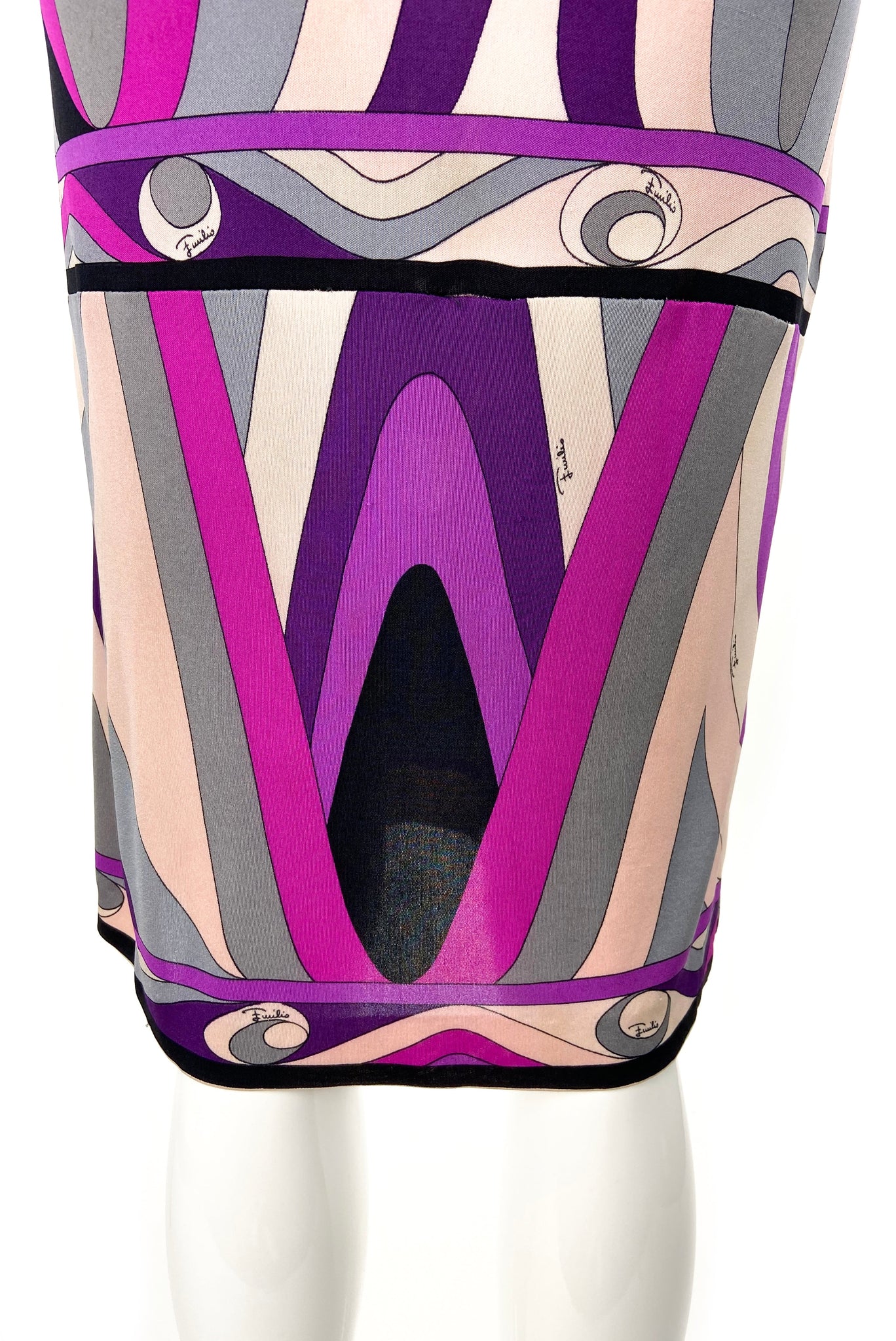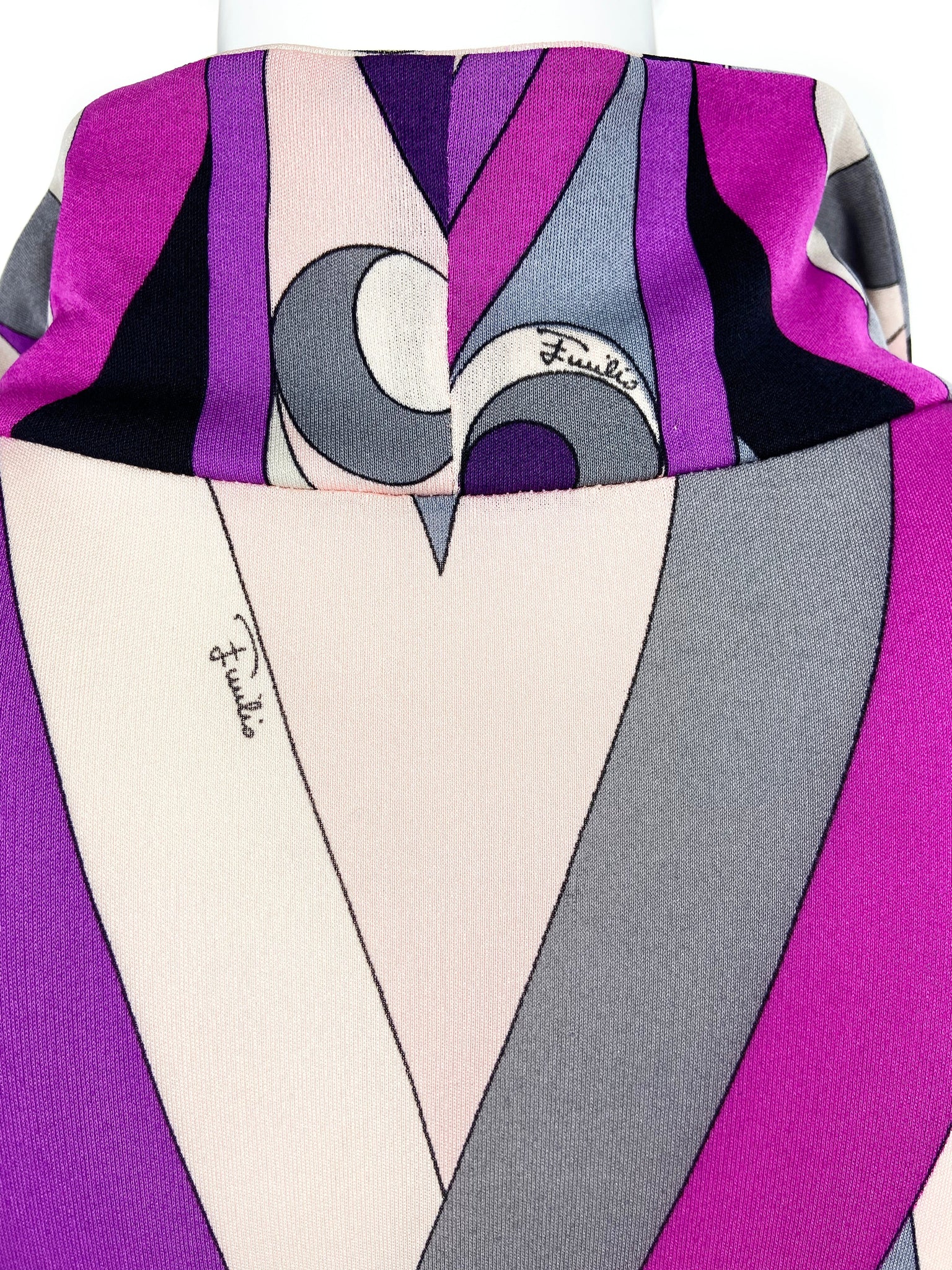 Emilio Pucci Purple Geometric Grey Blush and Purple Printed Polo Collar Dress