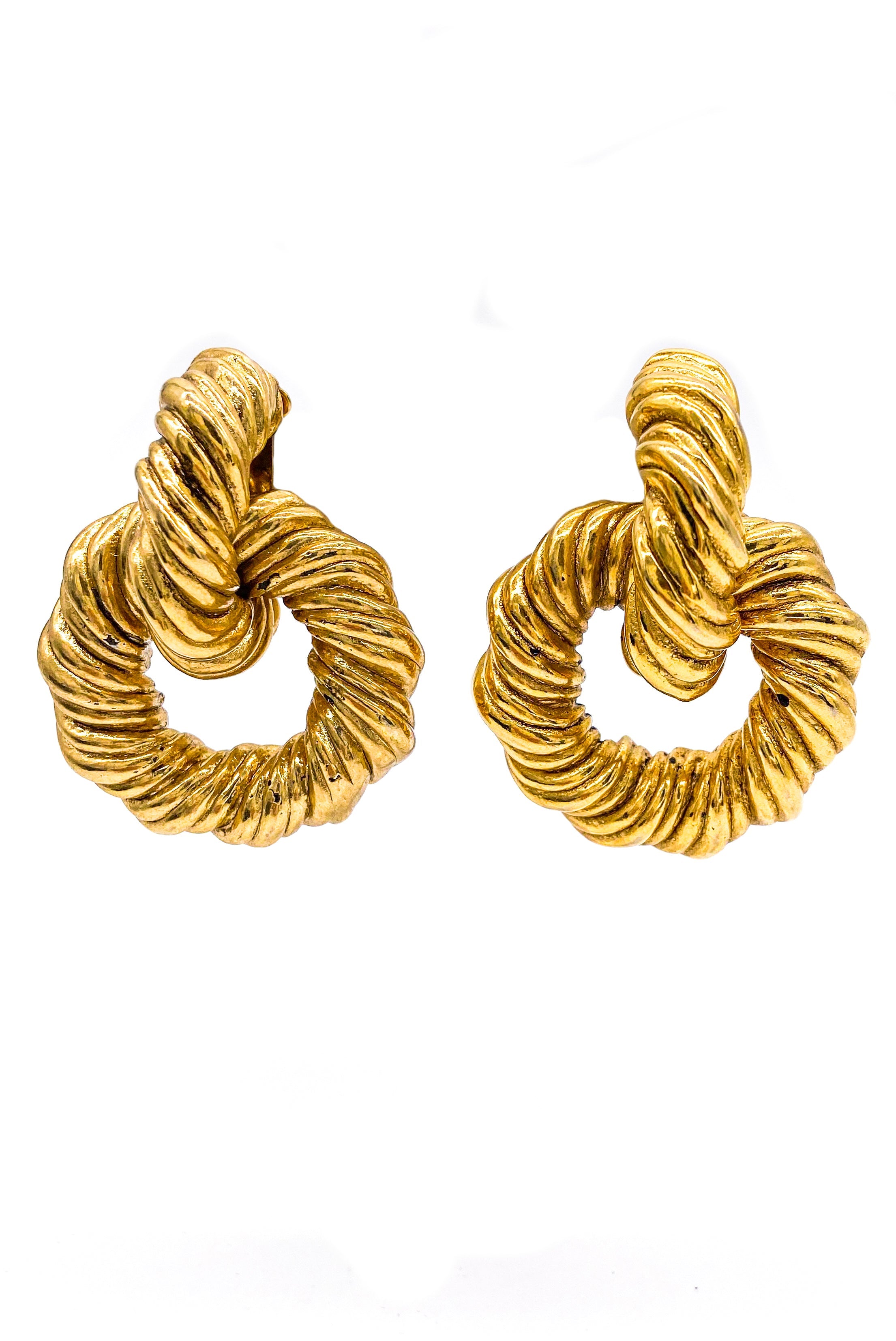 Escada Gold 1980's Textured Hoop Knocker Earrings