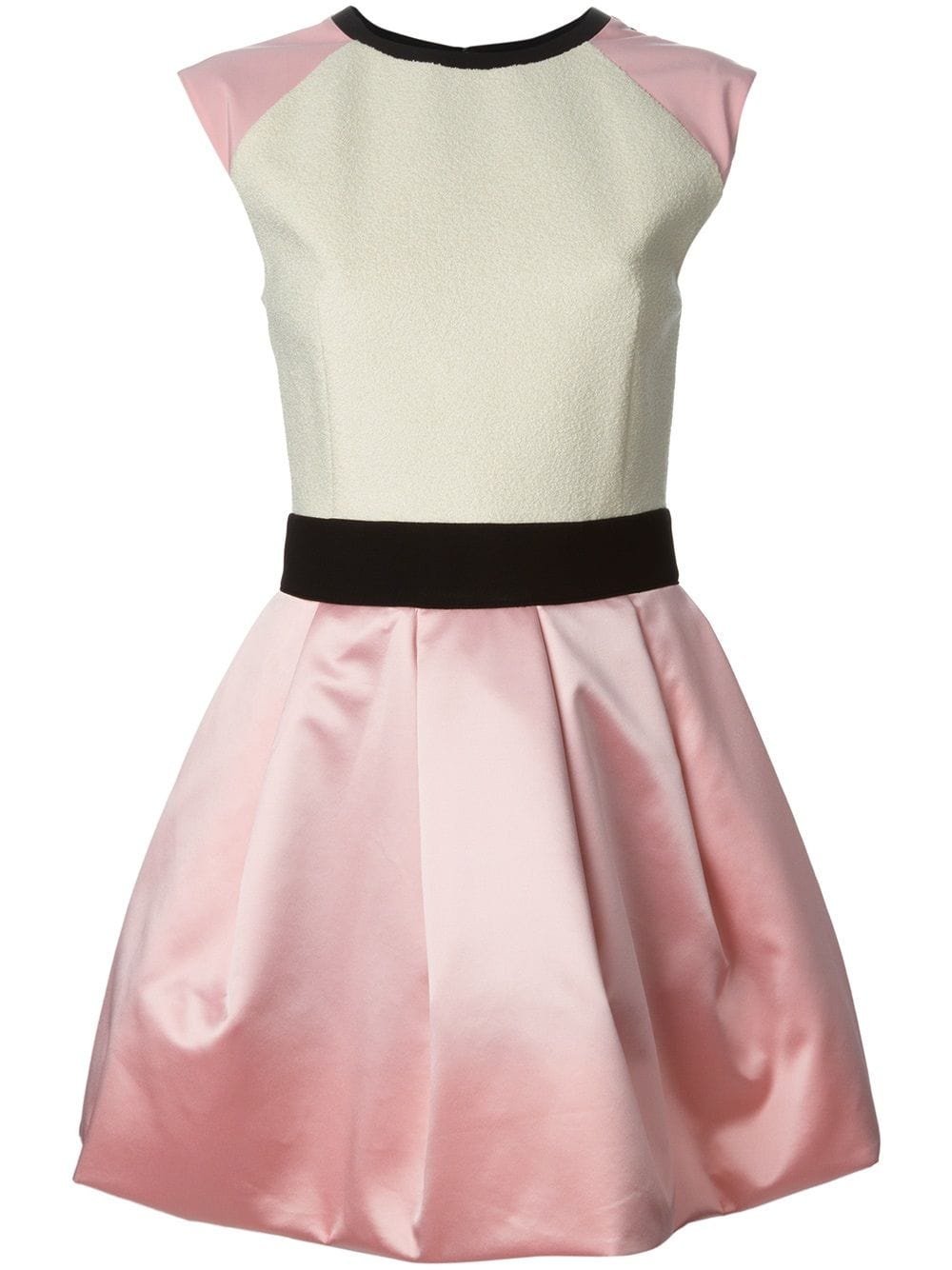 Fausto Puglisi Cream and Pink Satin Fit and Flare Dress - BOUTIQUE PURCHASE PRICE