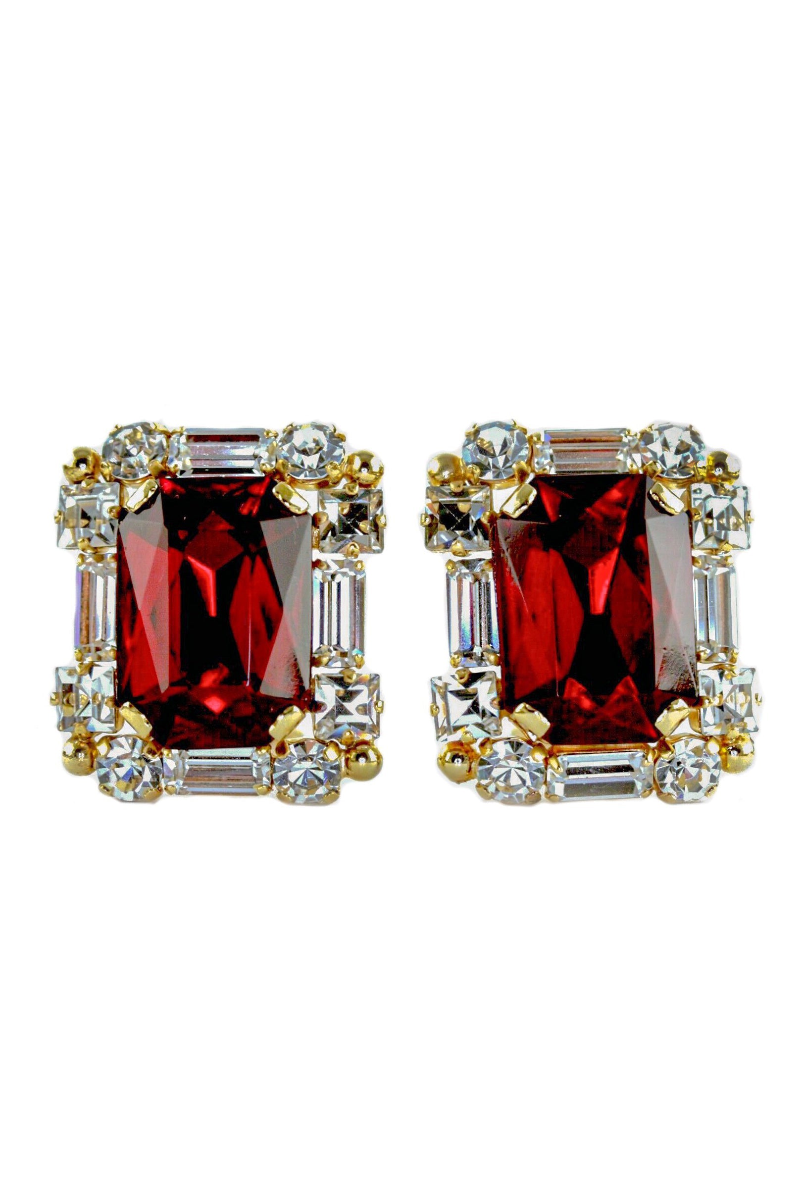 Gianfranco Ferré Ruby Red Square Cut Crystal Framed Earrings