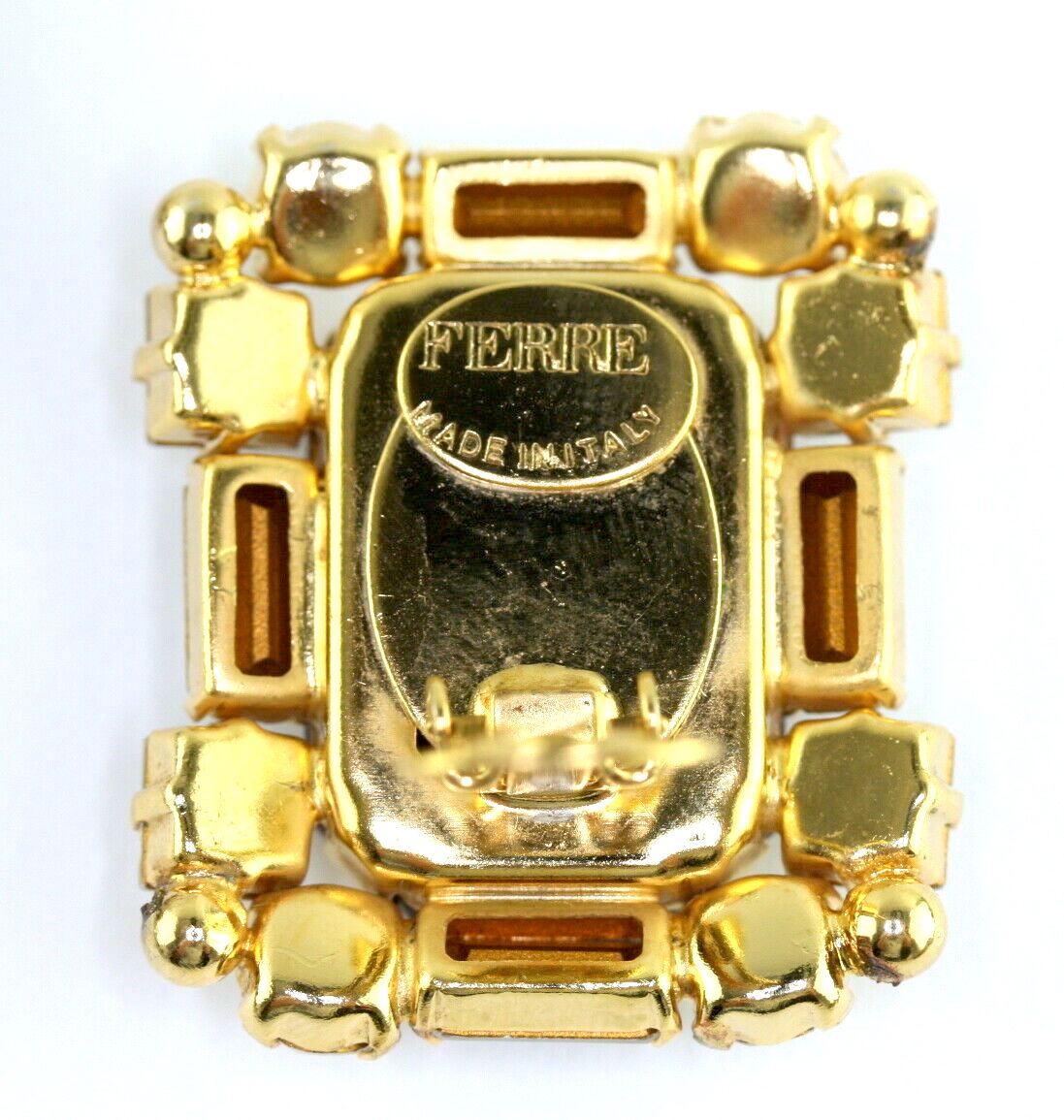 Gianfranco Ferre square cut ruby and crystal baguette costume clip on earrings. Italian made and signed by the designer.