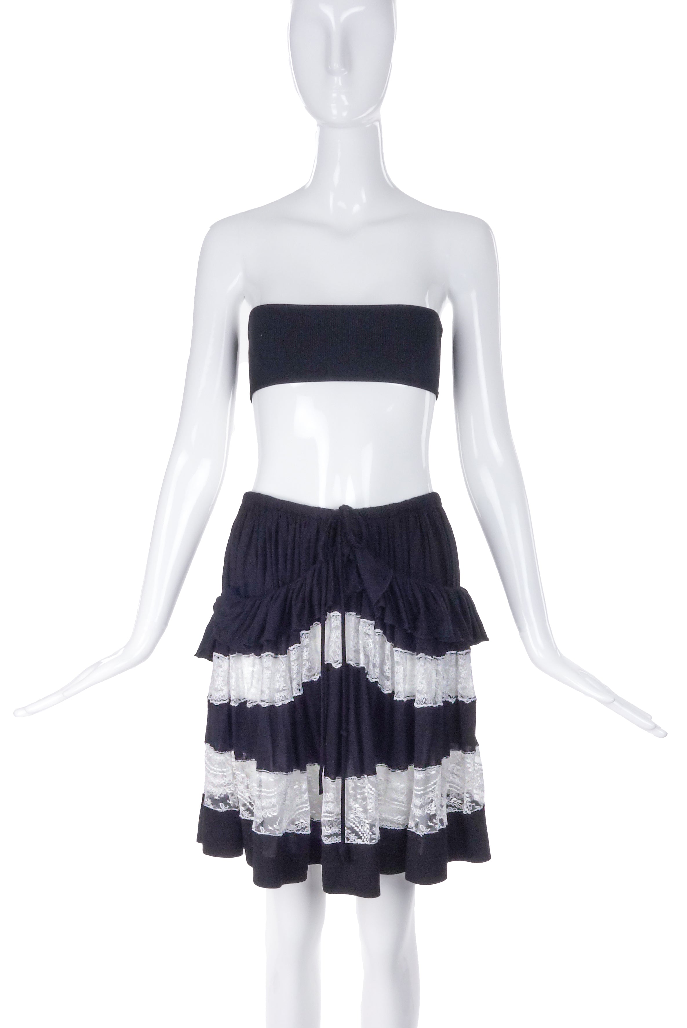 Givenchy Black Cotton Tiered Skirt with Lace Ruffles