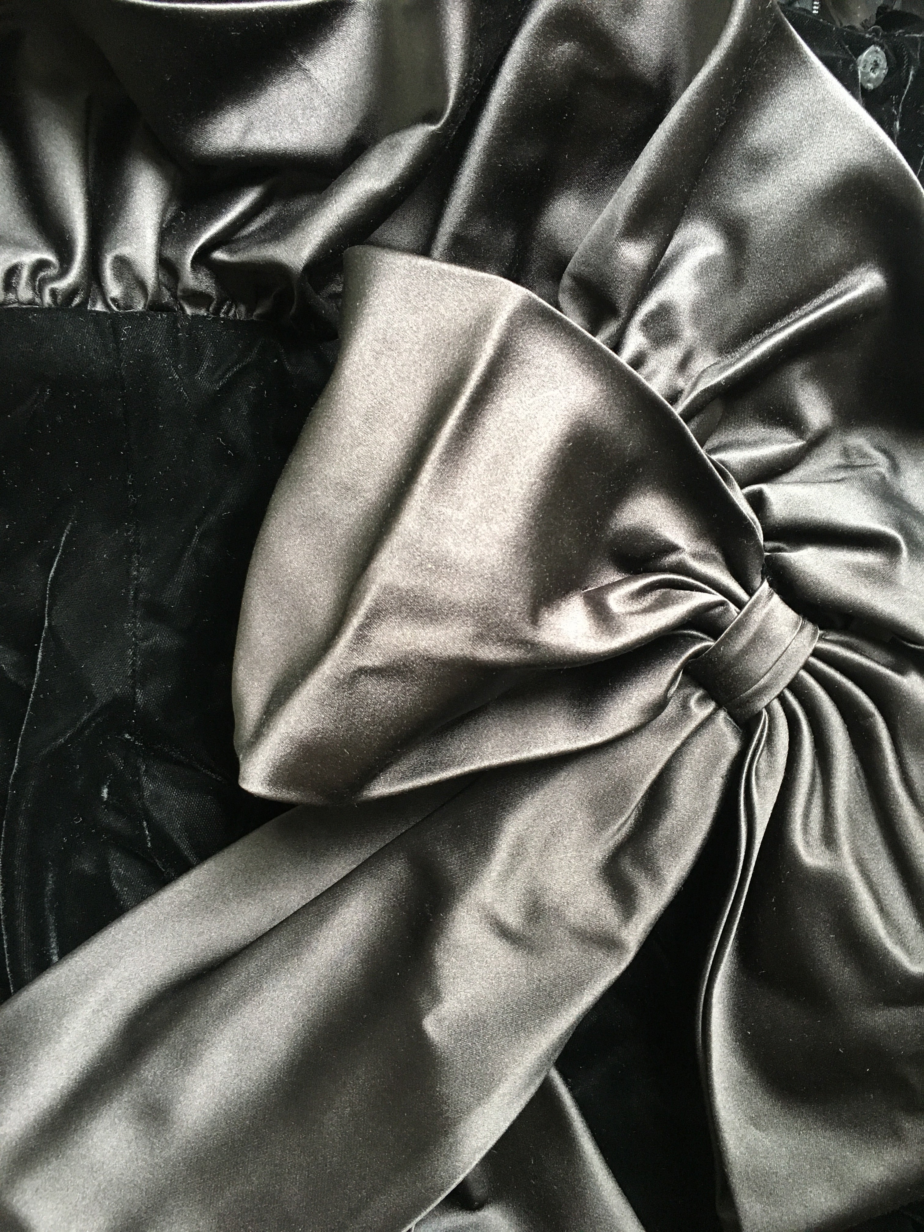 Givenchy Nouvelle Black Velvet Cocktail Dress with a Silk Taffeta Ruffle and Bow Details
