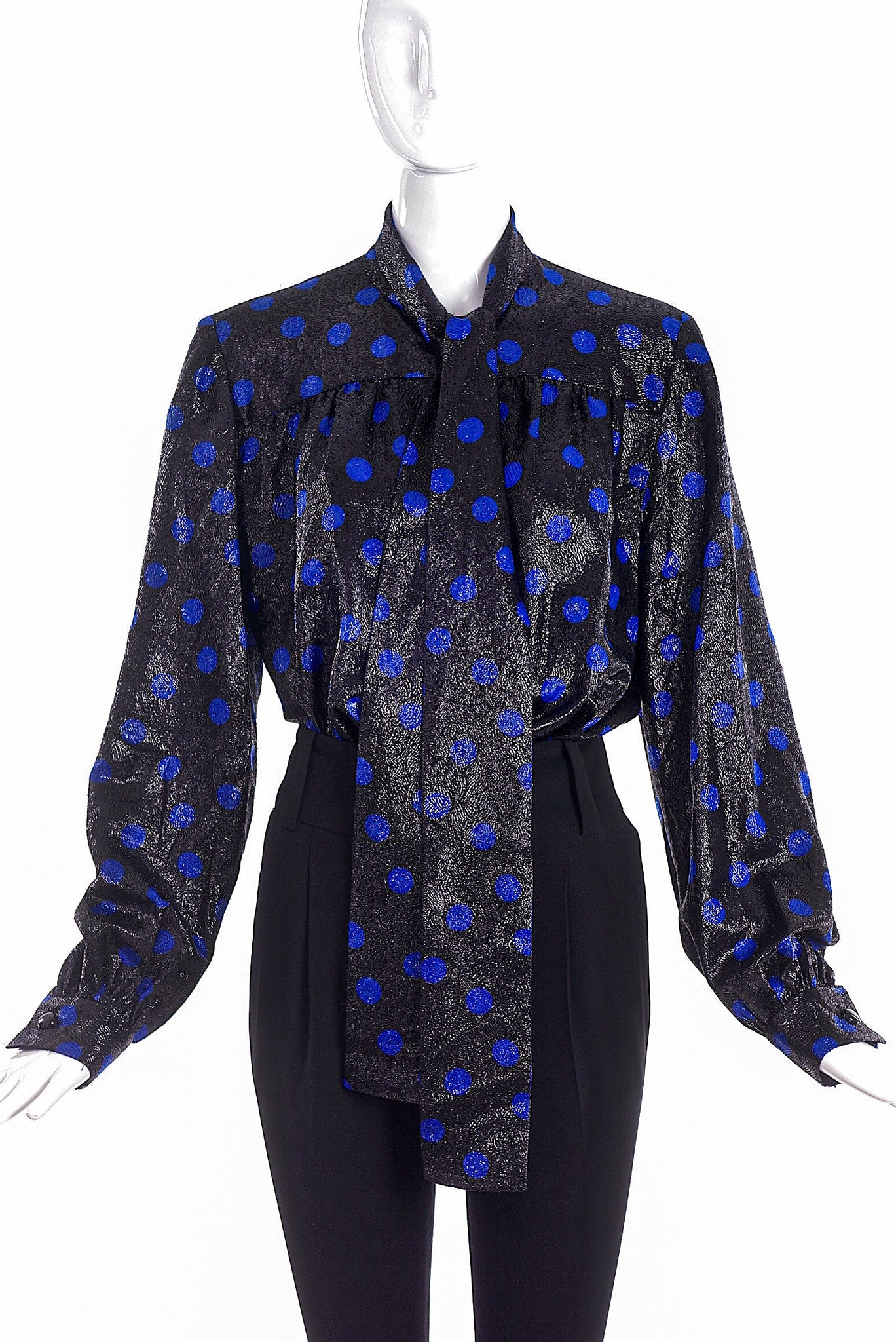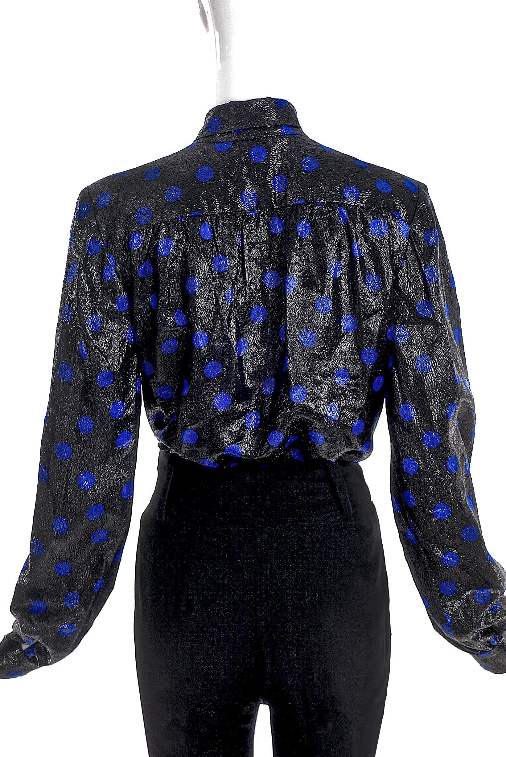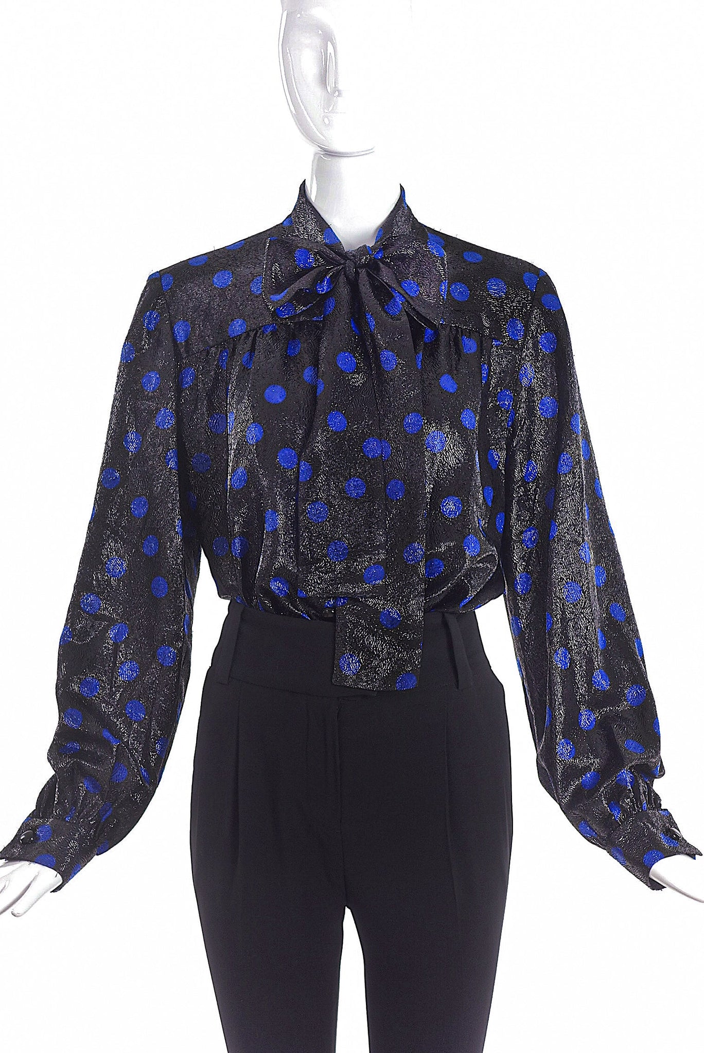 Givenchy Nouvelle Black Metallic Bow Blouse with Blue Dots