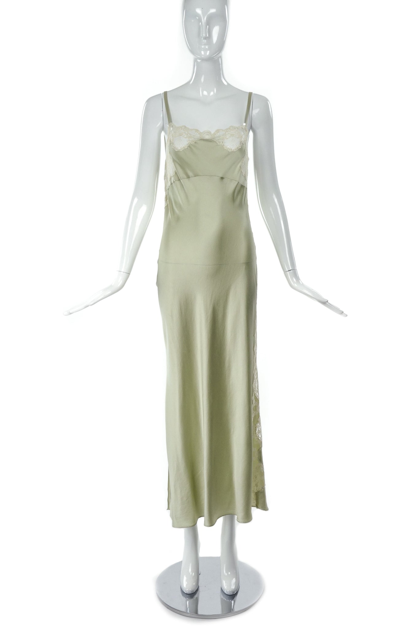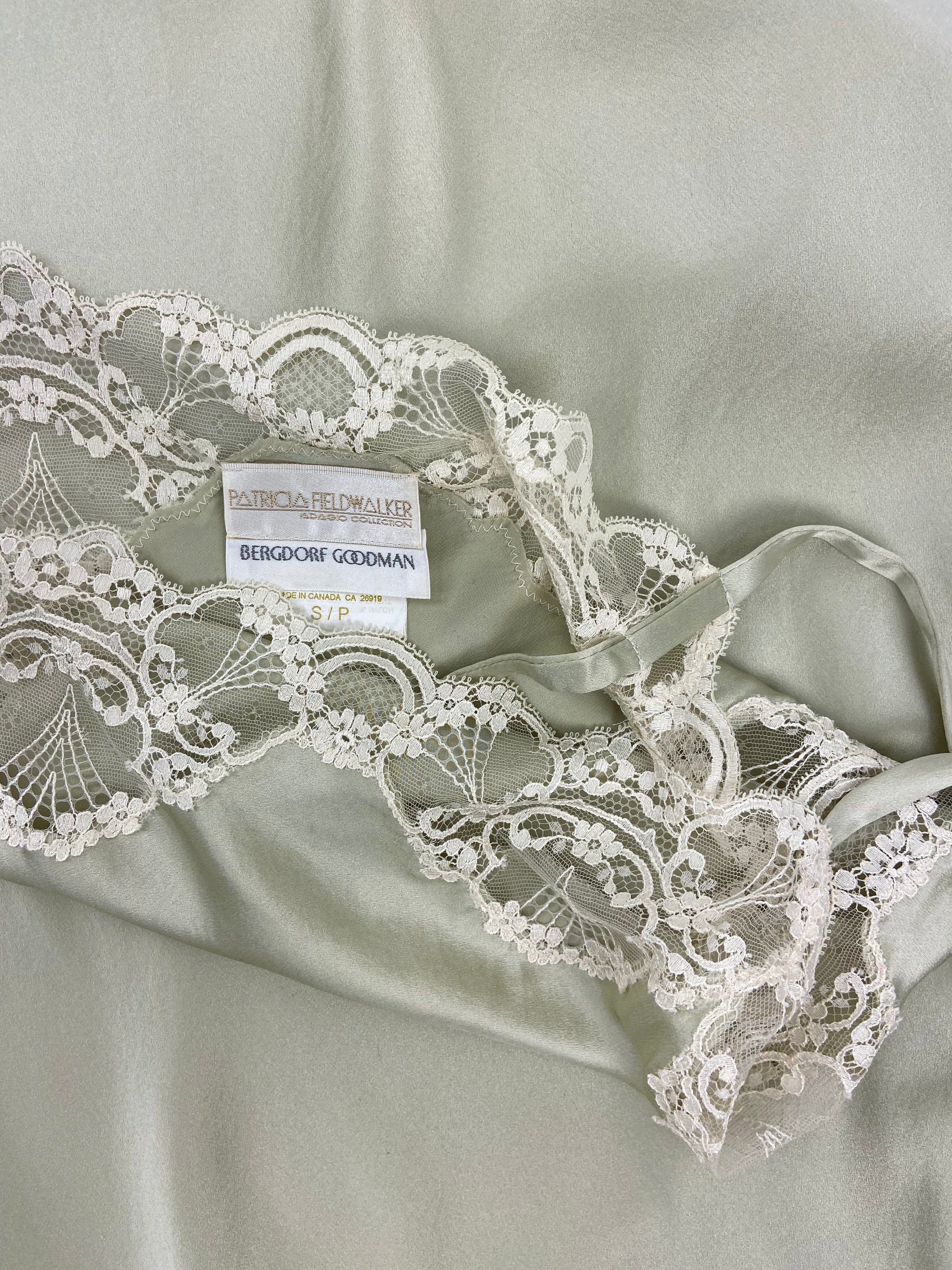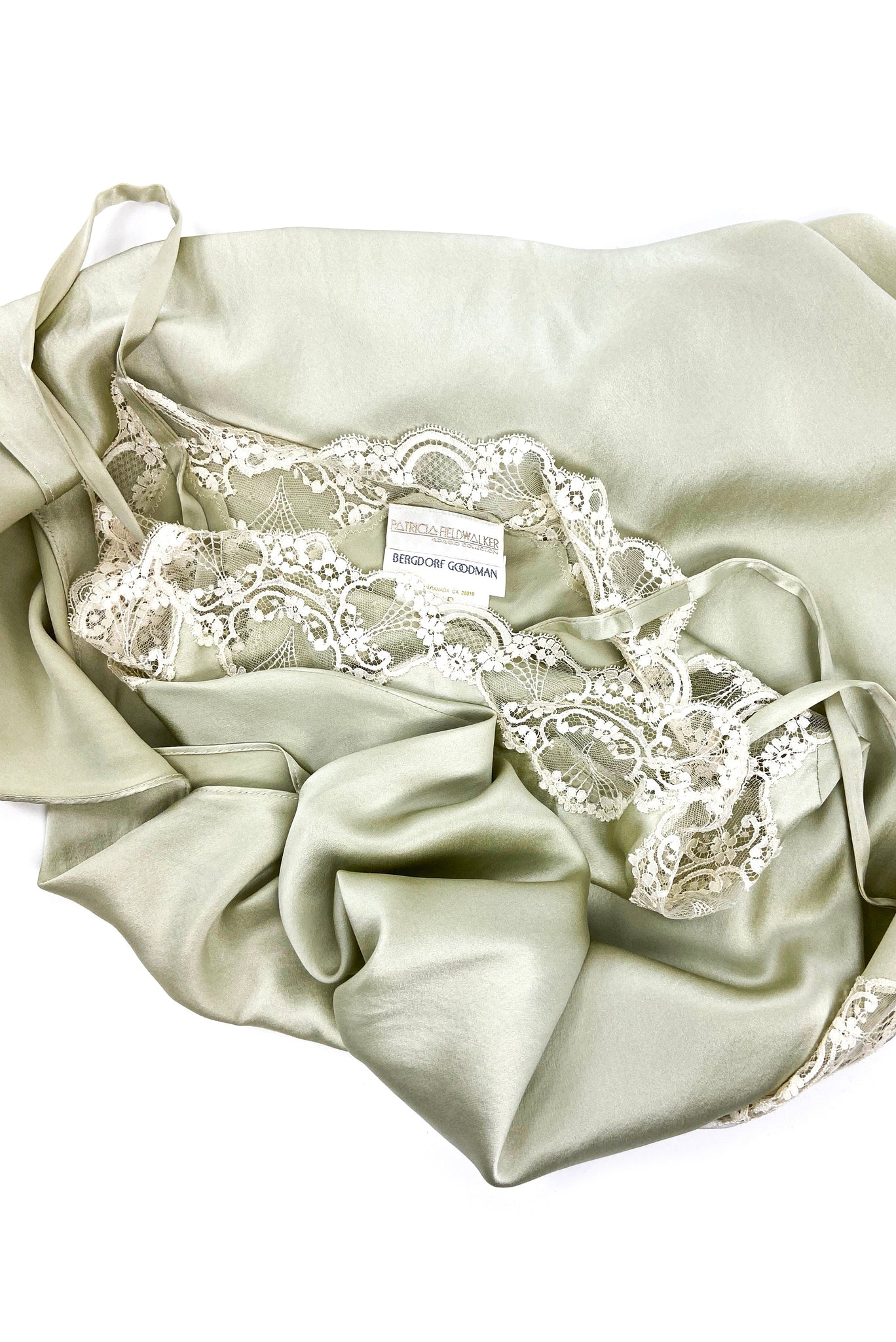 Vintage Green Silk Slip Dress with Creme Lace Inlays