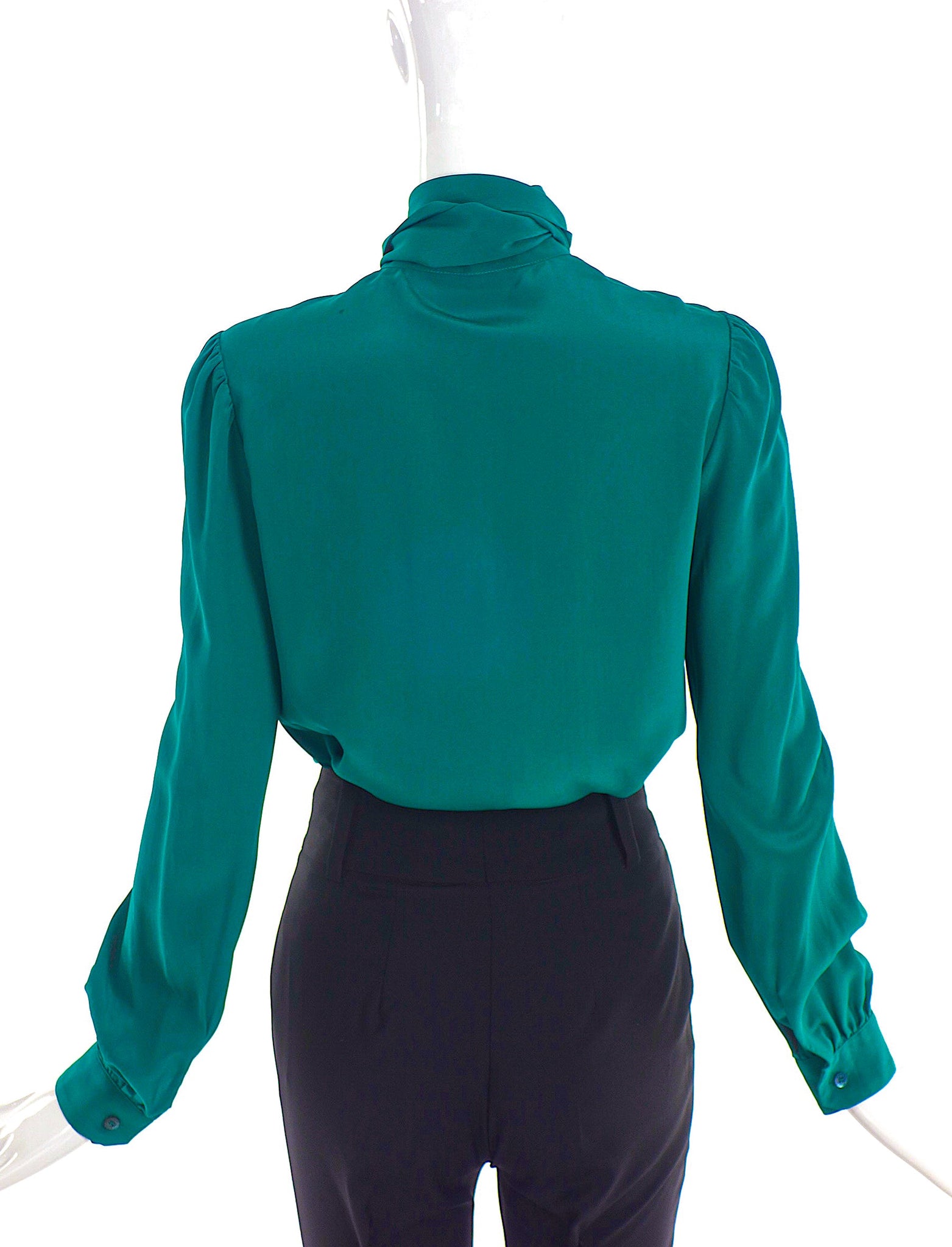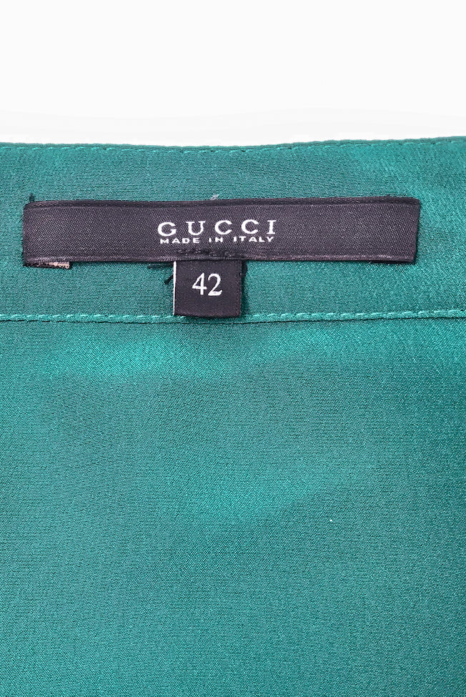 Gucci Emerald Teal Green Military Neck Bow Button-Up Blouse