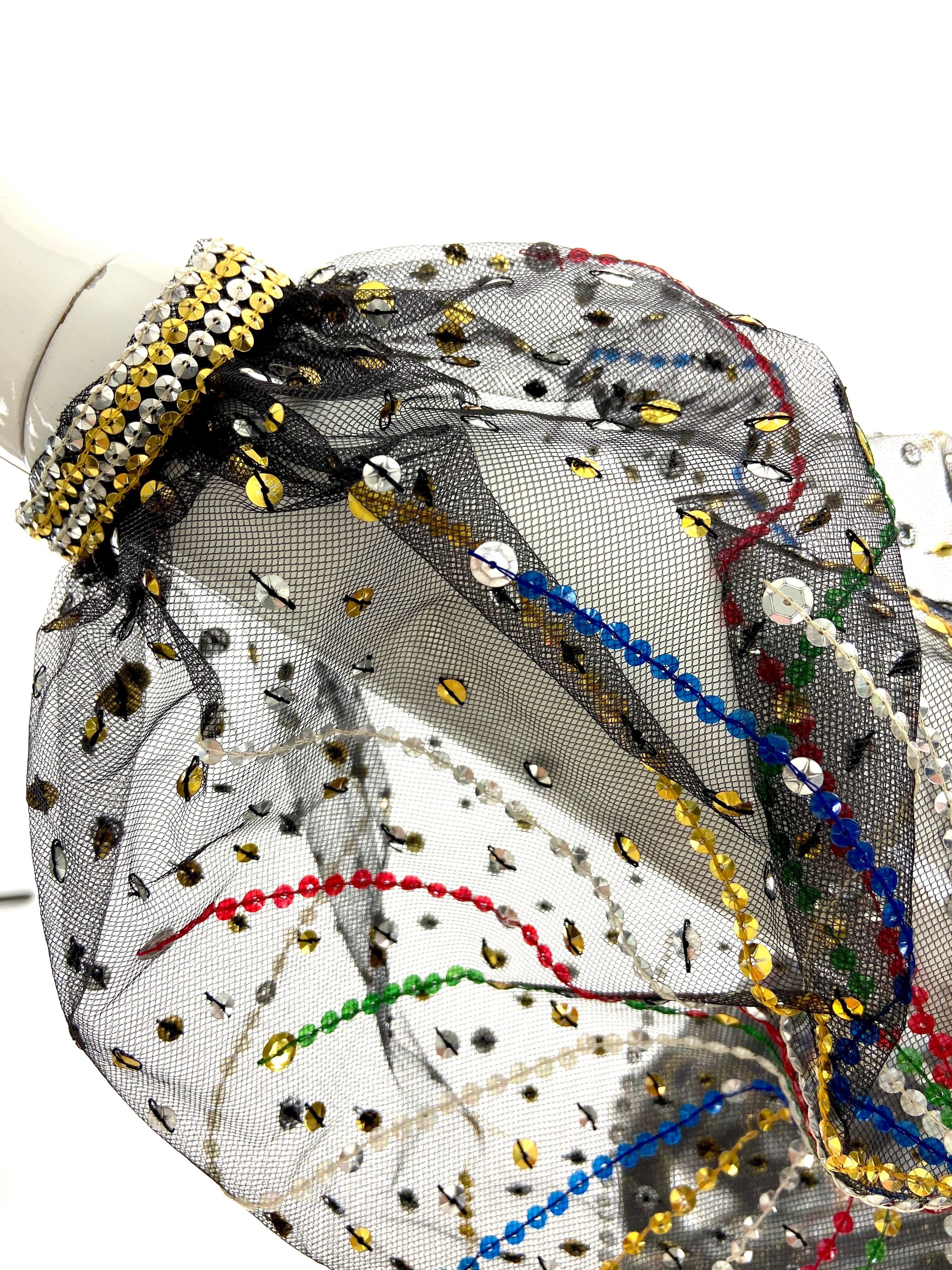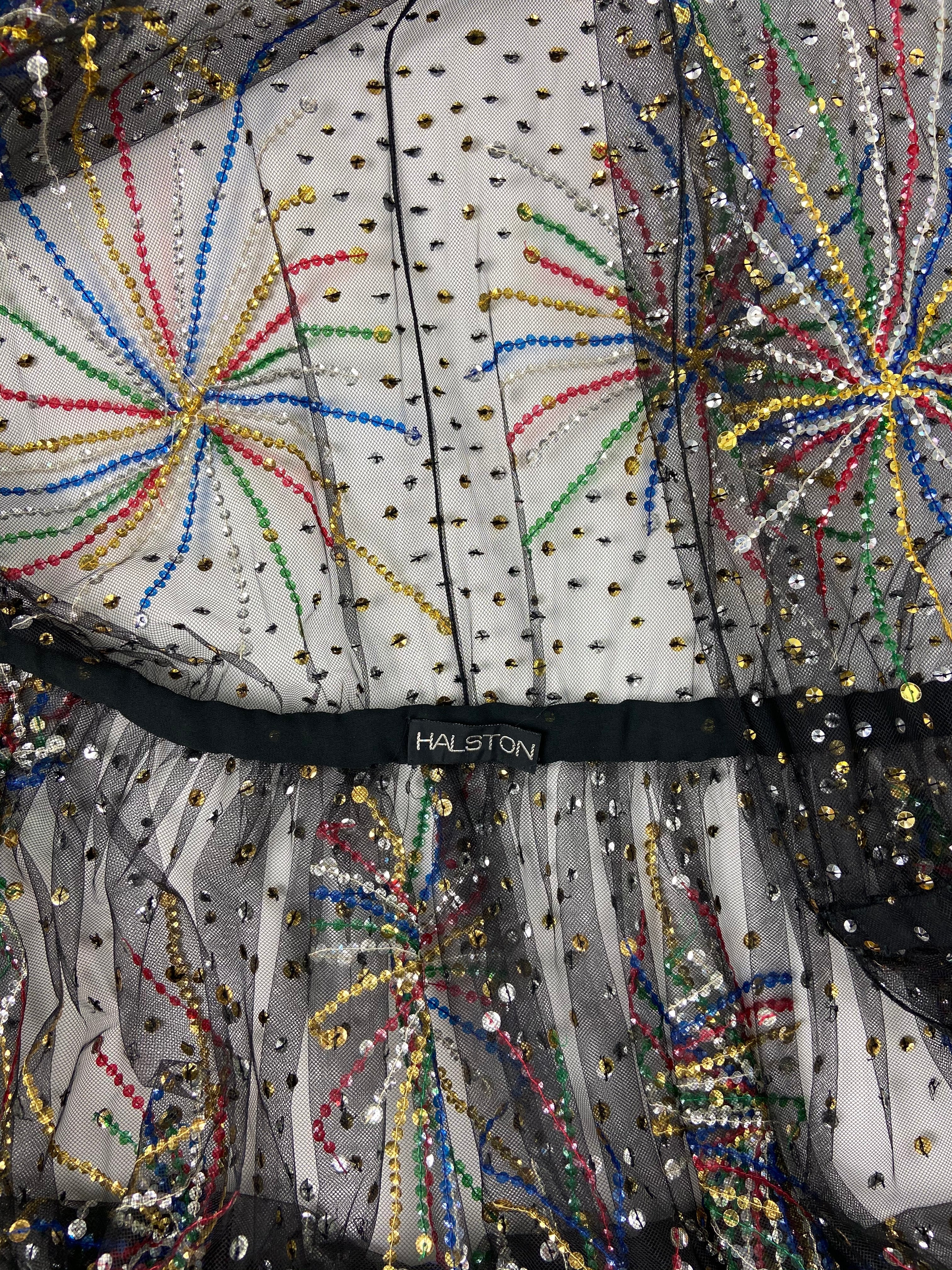 Halston Black Chiffon Beaded "Firework" Dress Gown FW1980