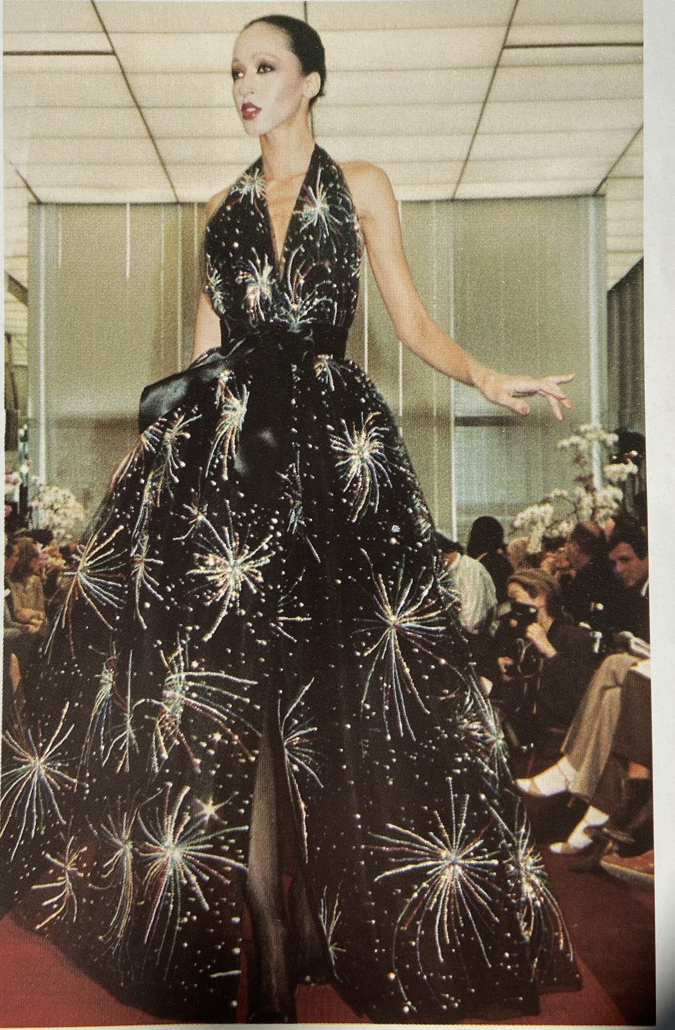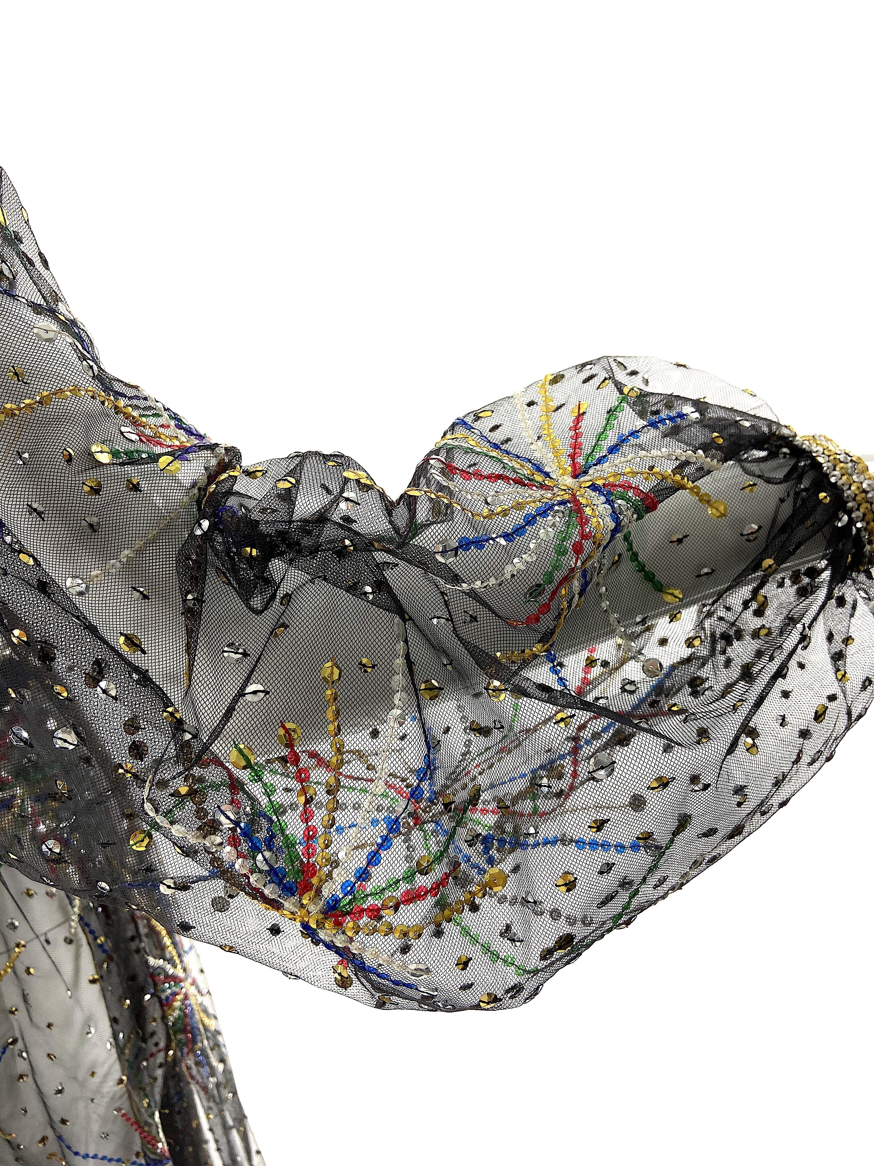 Halston Black Chiffon Beaded "Firework" Gown FW1980