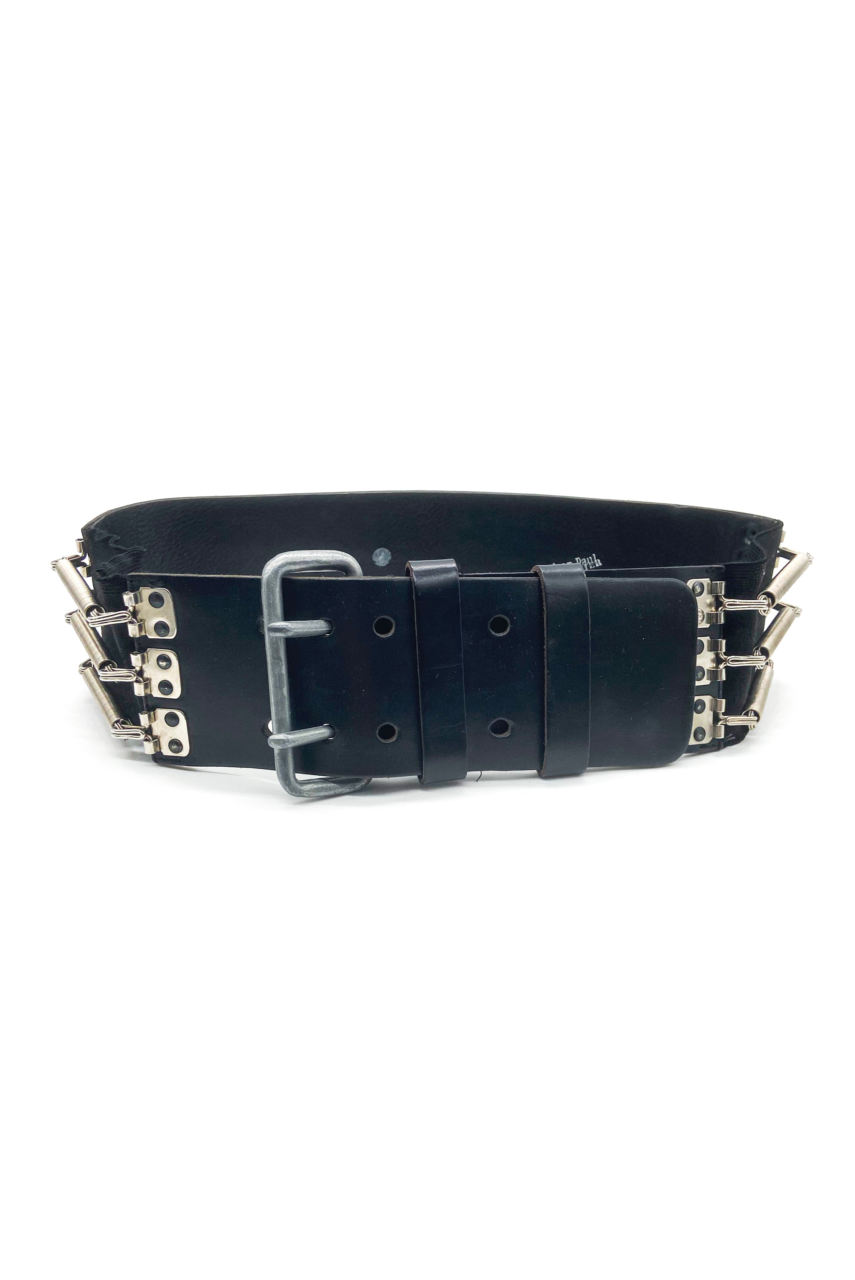 Jean Paul Gaultier Black Leather and Elastic "Steampunk" Belt with Metal Hardware