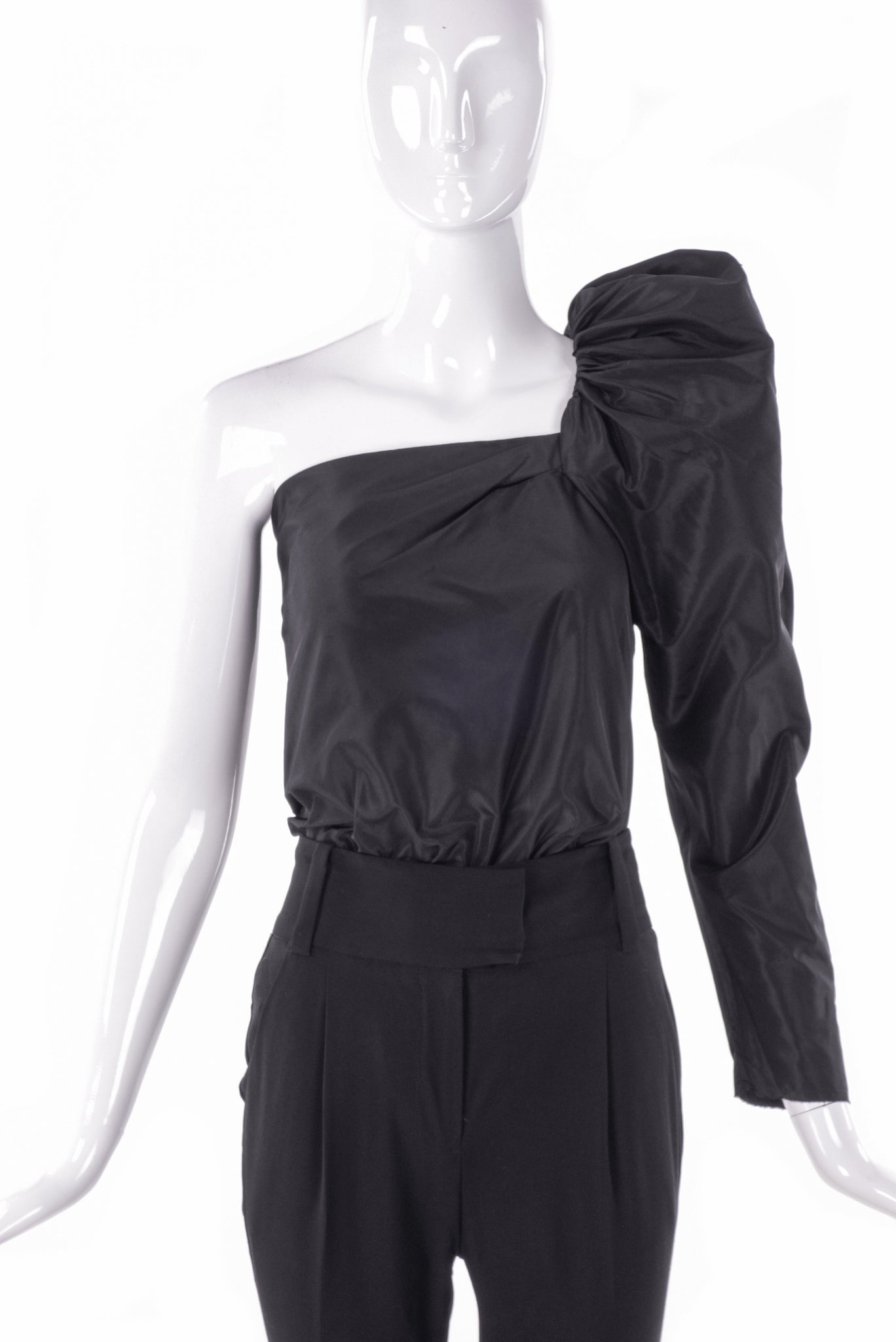 Lanvin Asymmetric Black One Sleeve "Elephant Trunk" Puff Top