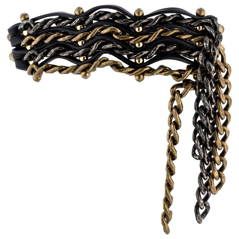 Lanvin Gunmetal Gold Bronze Biker Chain Choker Necklace Fall 2014