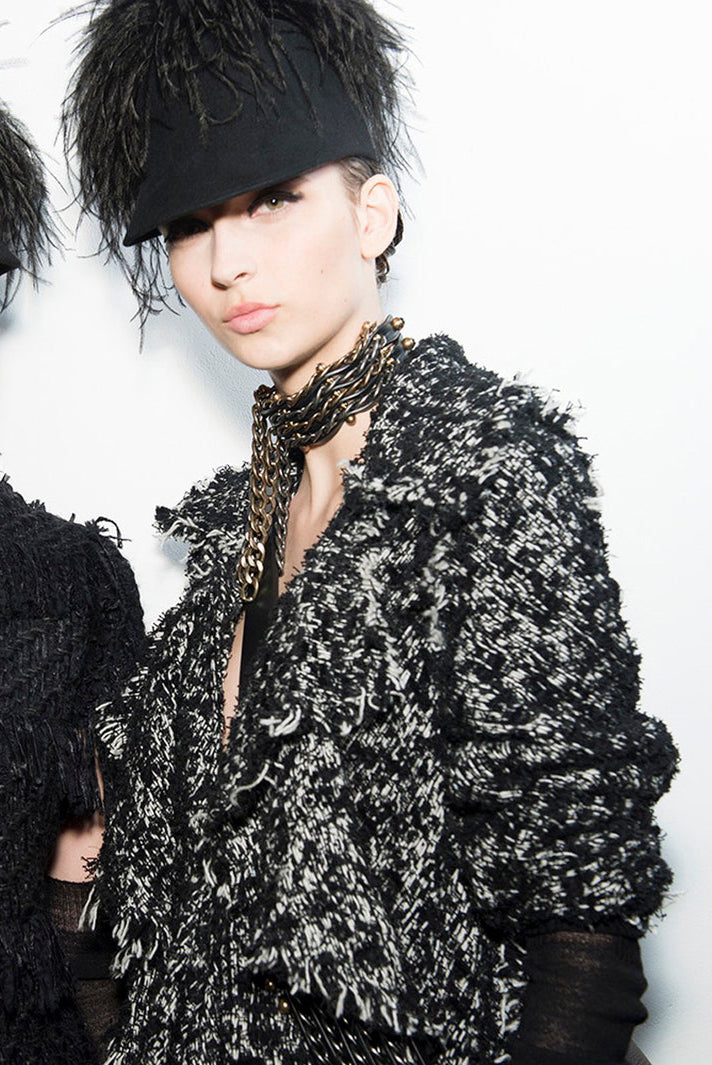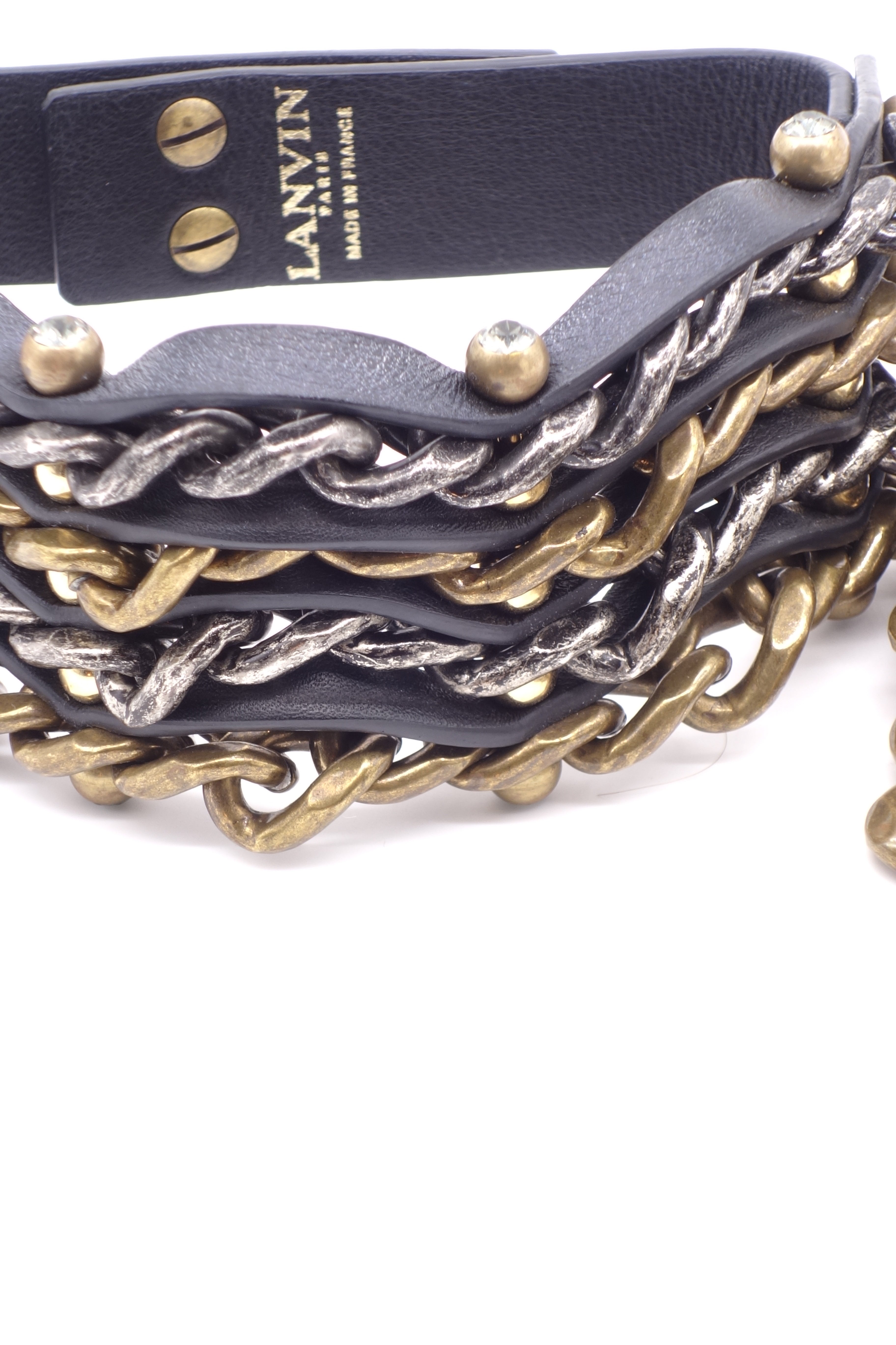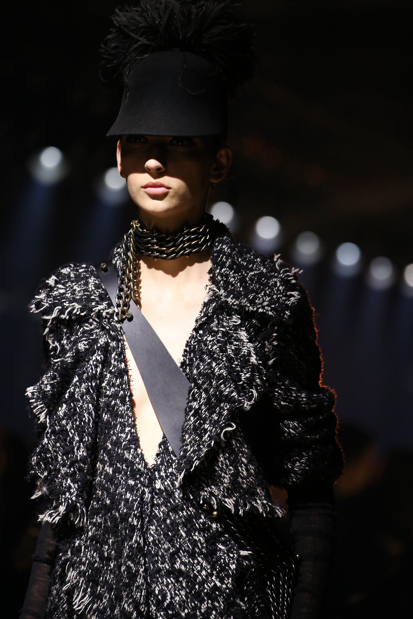 Lanvin gold and gunmetal biker chain choker from the Fall Winter 2014 collection - Look 5.