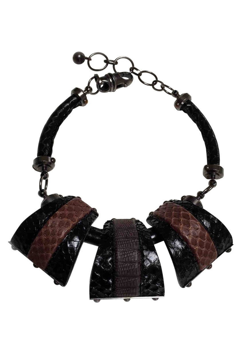 Lanvin "Safari" Black and Brown Snakeskin Necklace