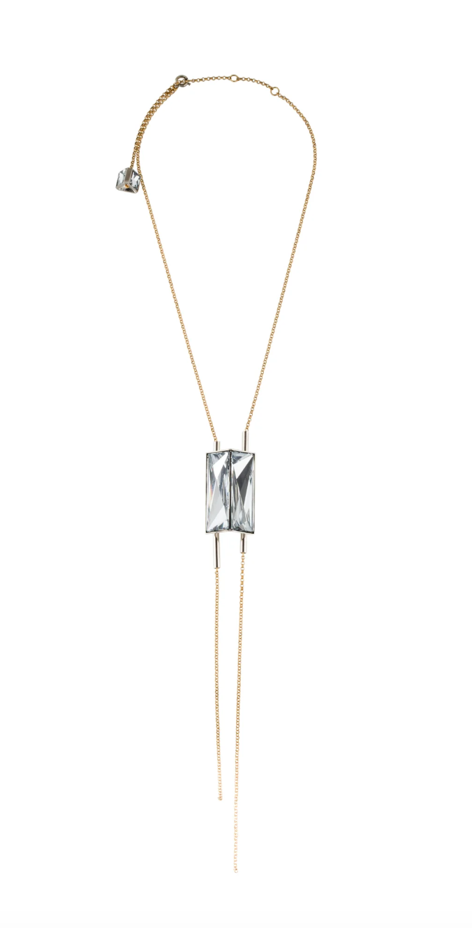 Lanvin Gold Geometric Crystal Bolo Necklace