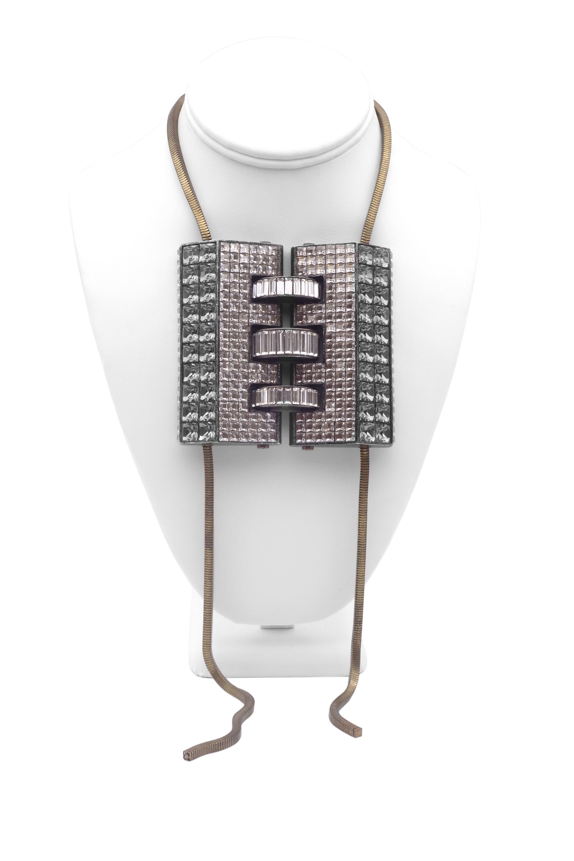 Lanvin Geometric Crystal Necklace with Ribbon FW2014