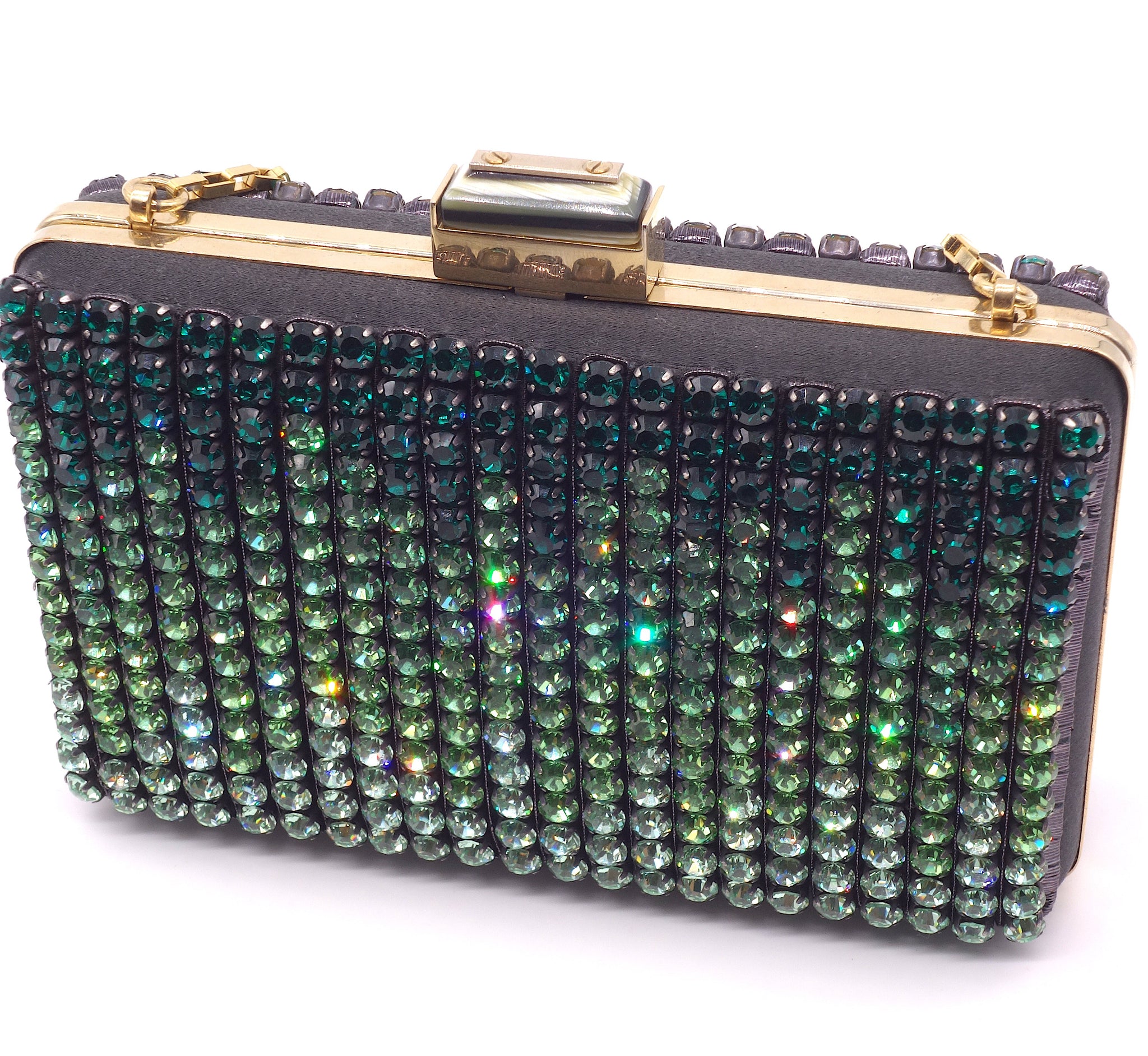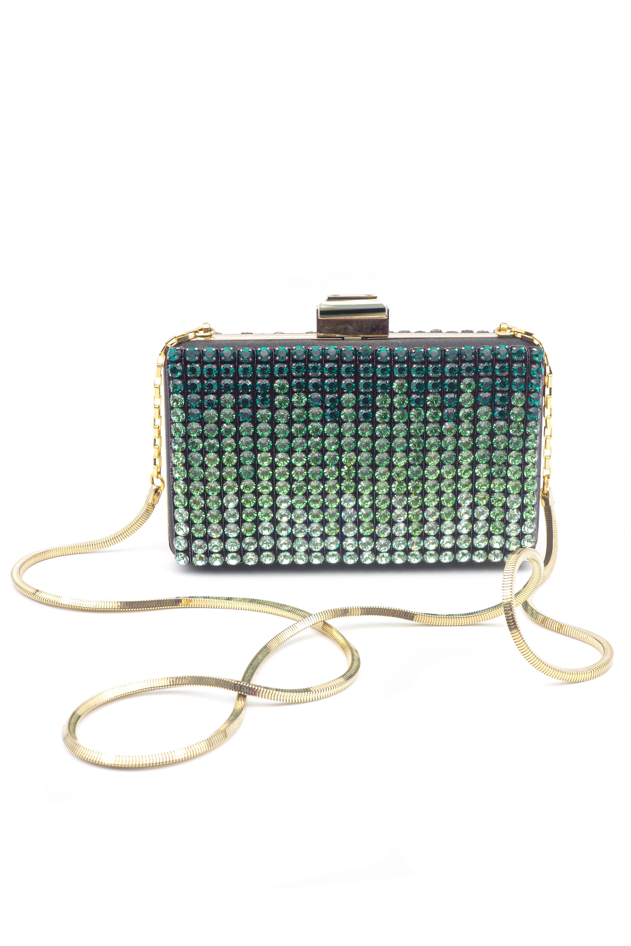 Lanvin Minaudière Clutch with Ombré Green Graduating Crystals