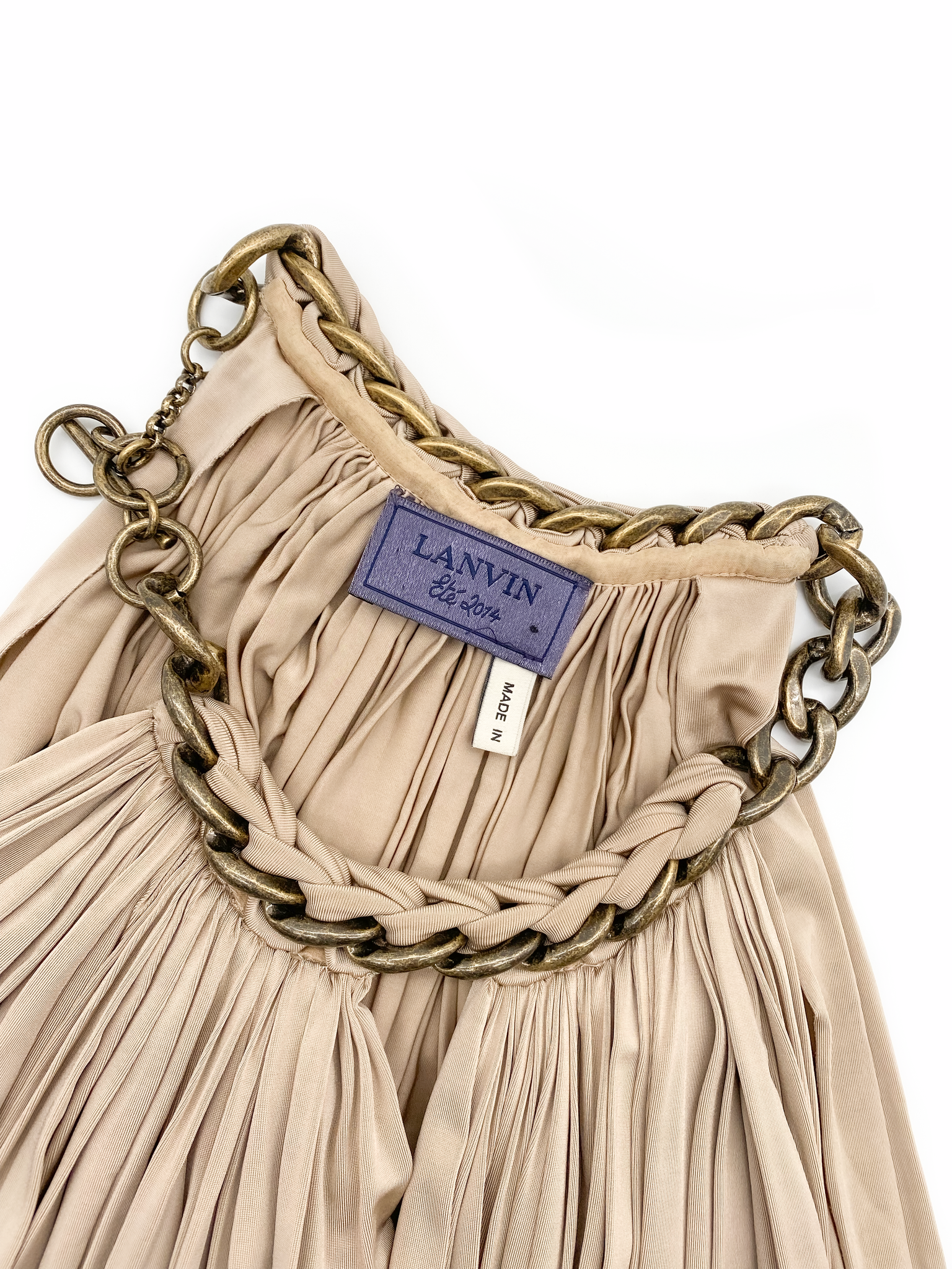 Lanvin Nude Silk Pleated Thick Halterneck Chain Top