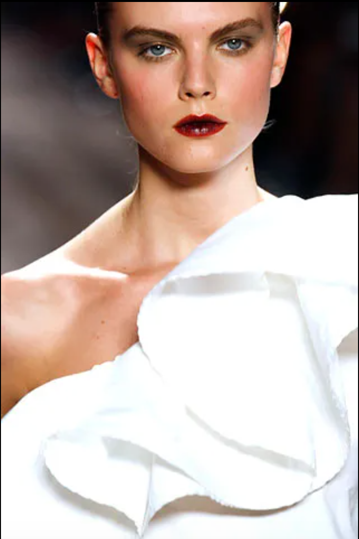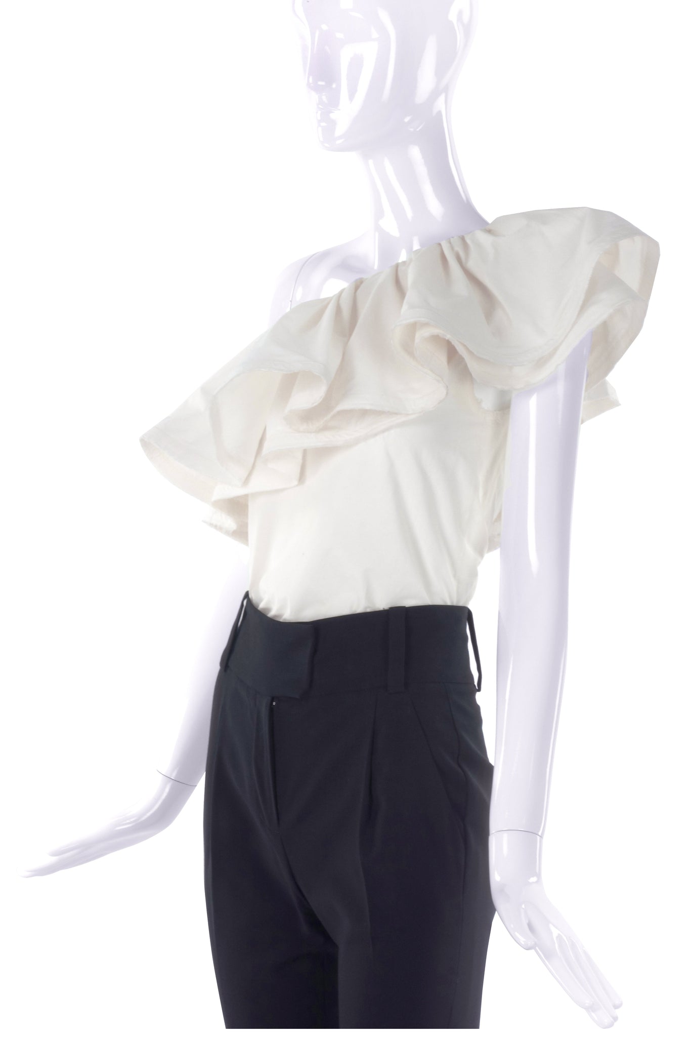 Lanvin One Shoulder Ruffle Top from the Spring 2008 collection look 31 in a silk nylon type fabric.