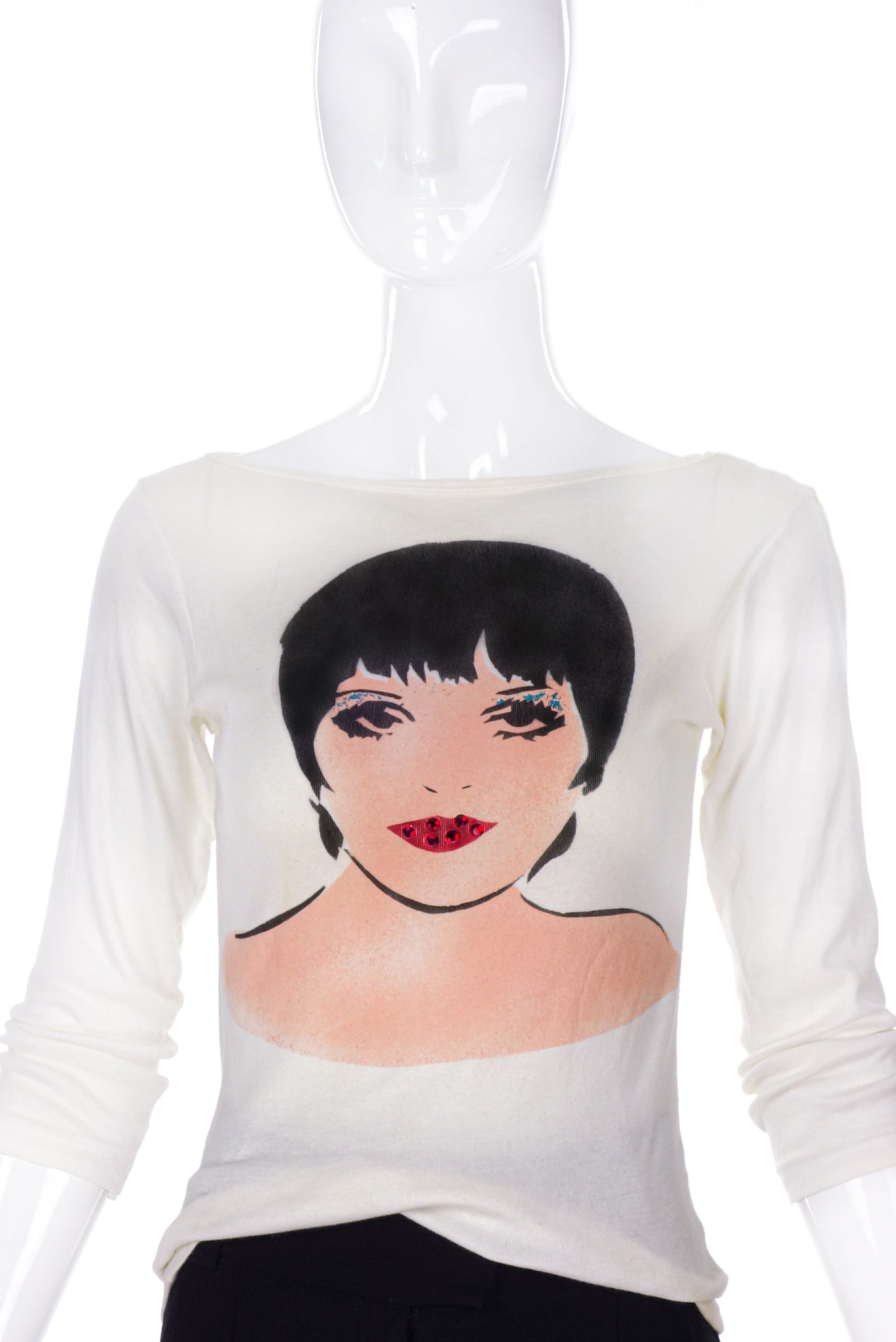 Heatherette Liza Minnelli Long Sleeve T-Shirt Ruby Rhinestone Lips and Glitter Eye ShadowFW2002