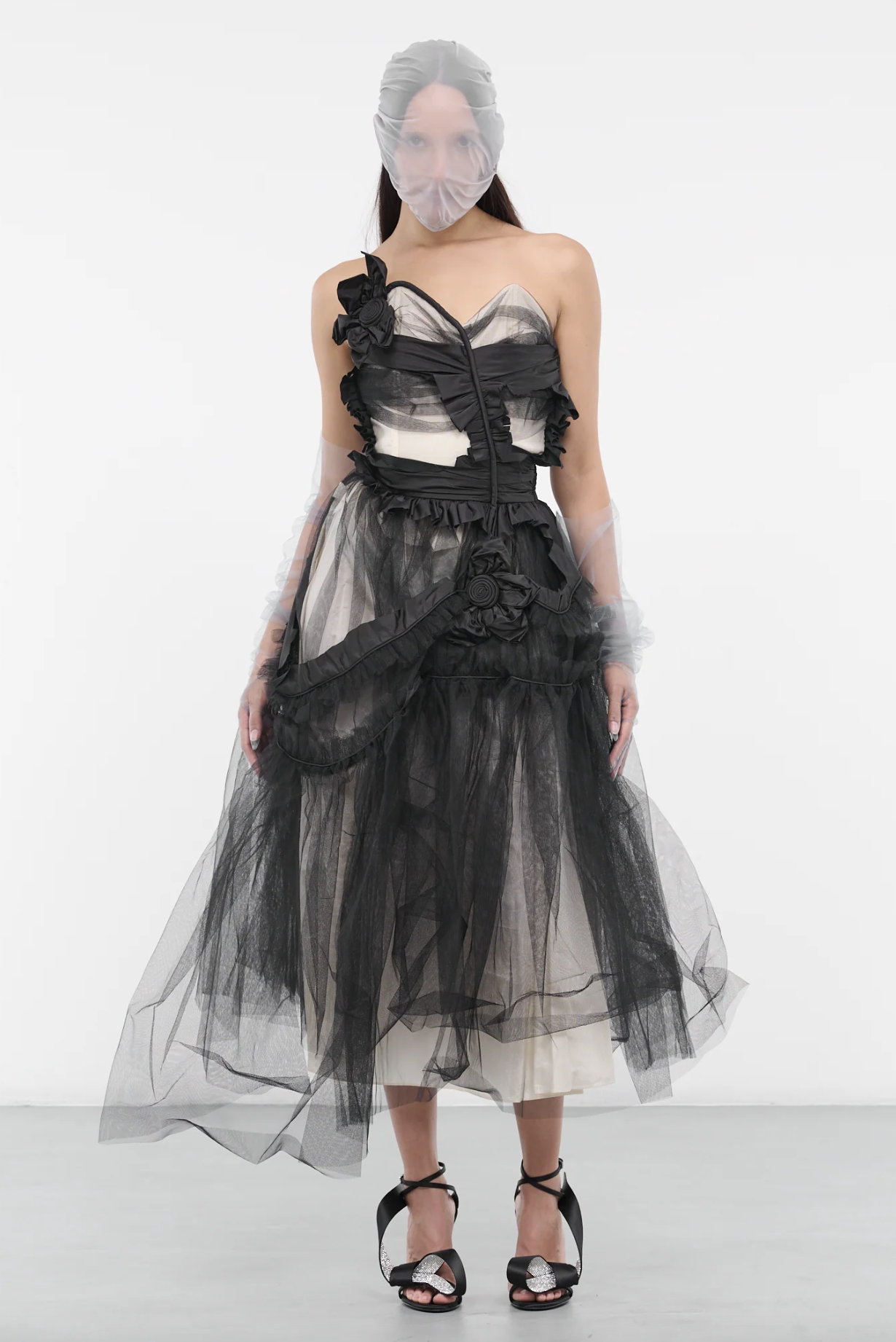 Maison Margiela Black & White Flower Tulle Sleeveless Gown