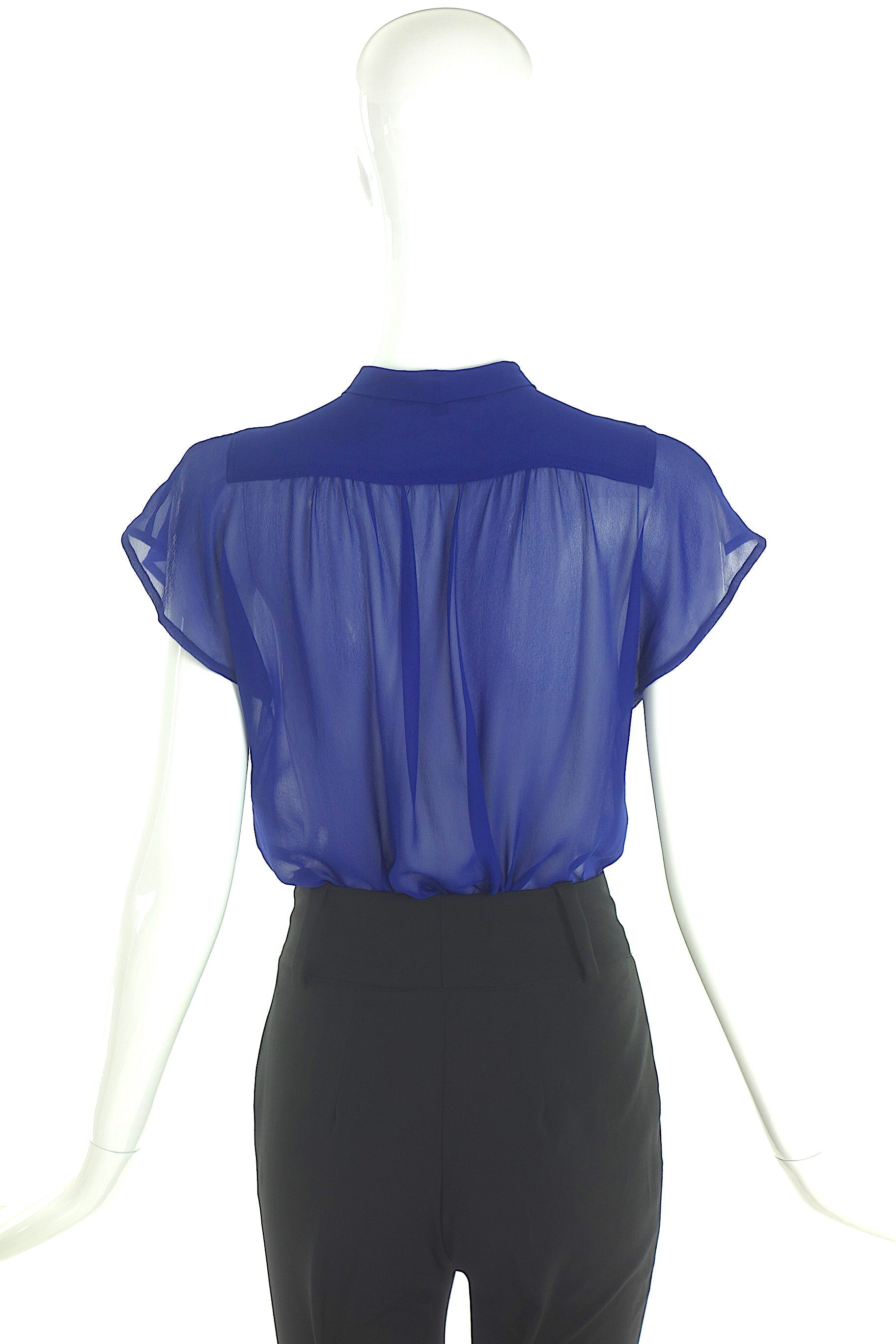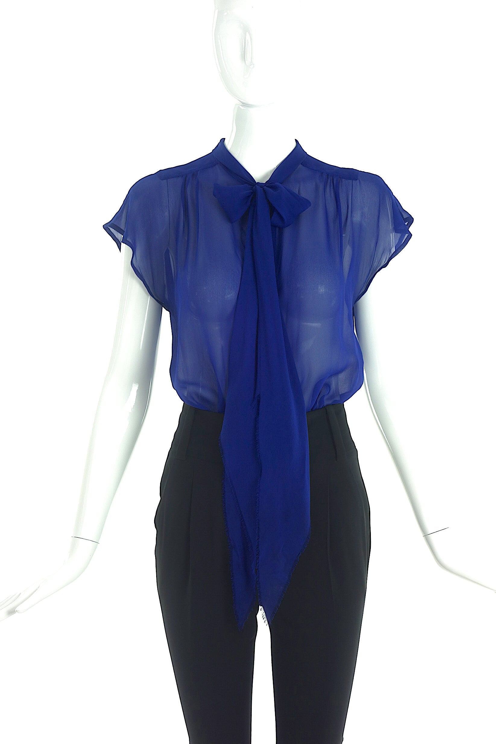 Marc Jacobs cobalt blue sheer button-up blouse with an attached pussy bow neck tie.