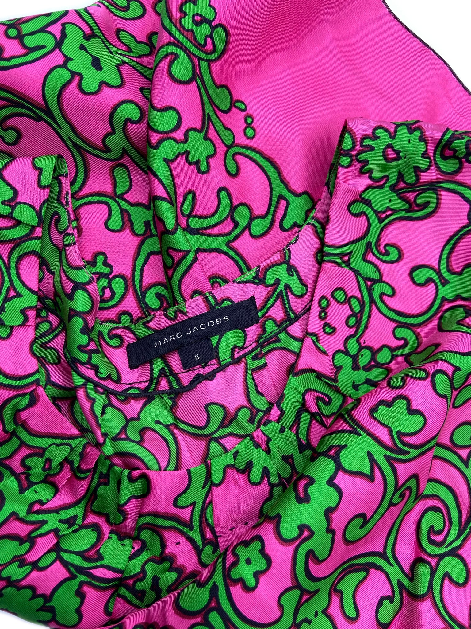 Marc Jacobs Fuchsia Pink and Lime Green Print Silk Top and Scarf FW2009