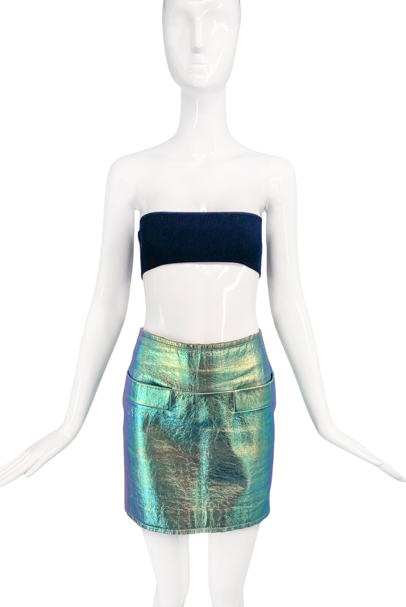 Marc Jacobs Iridescent Green Pink Leather Raver Mini Skirt