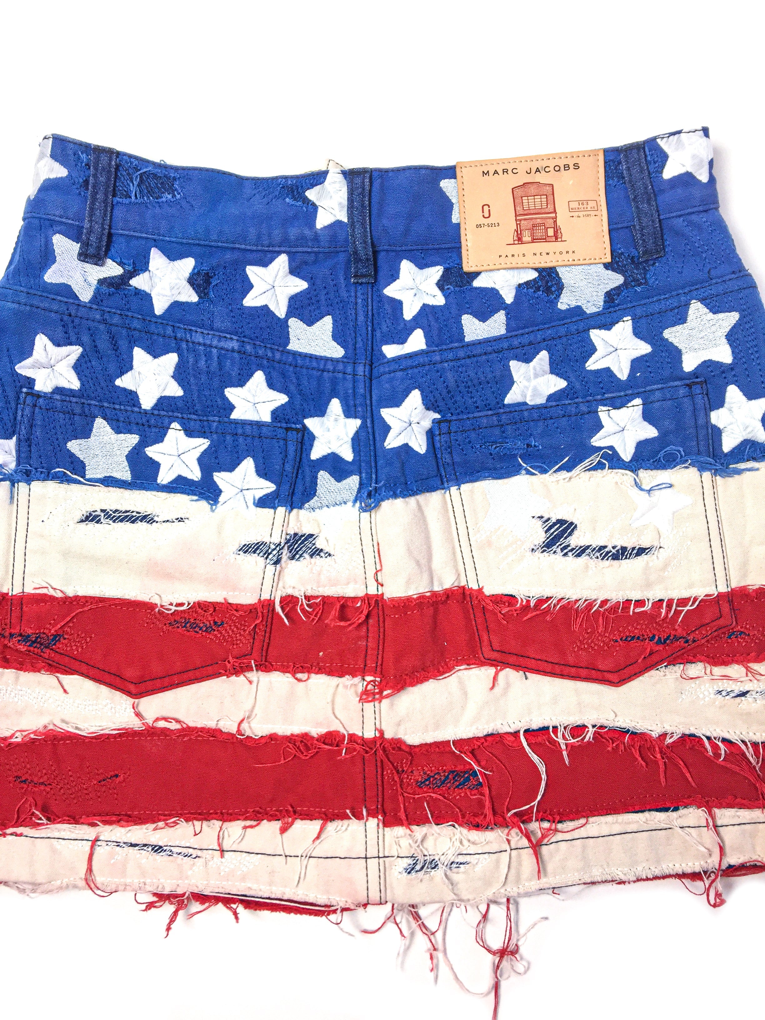 Marc Jacobs Patriotic Distressed American Flag Mini Skirt
