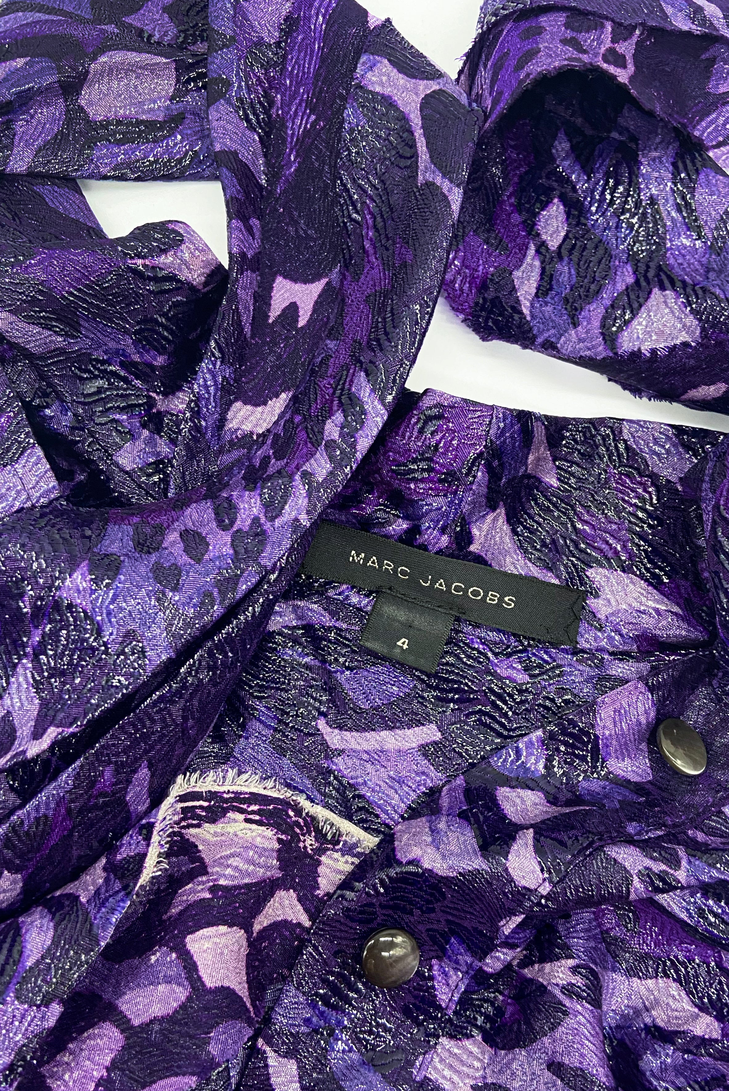 Marc Jacobs Purple Shine Silk Camoflauge Print Shift Dress