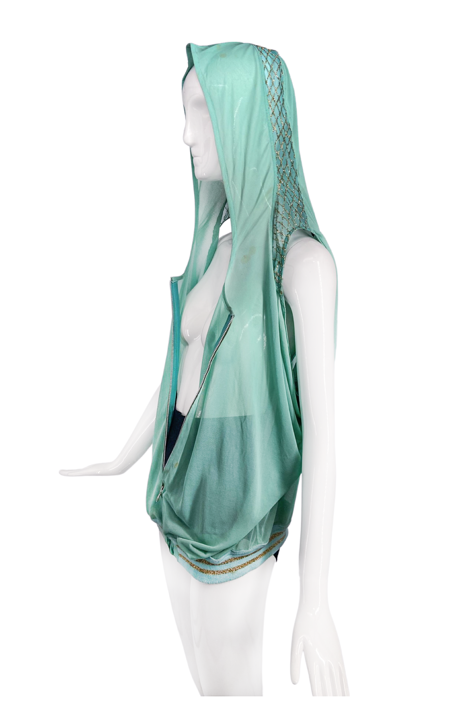 Marjan Pejoski Turqouise Gold Sheer Hooded Top 2003