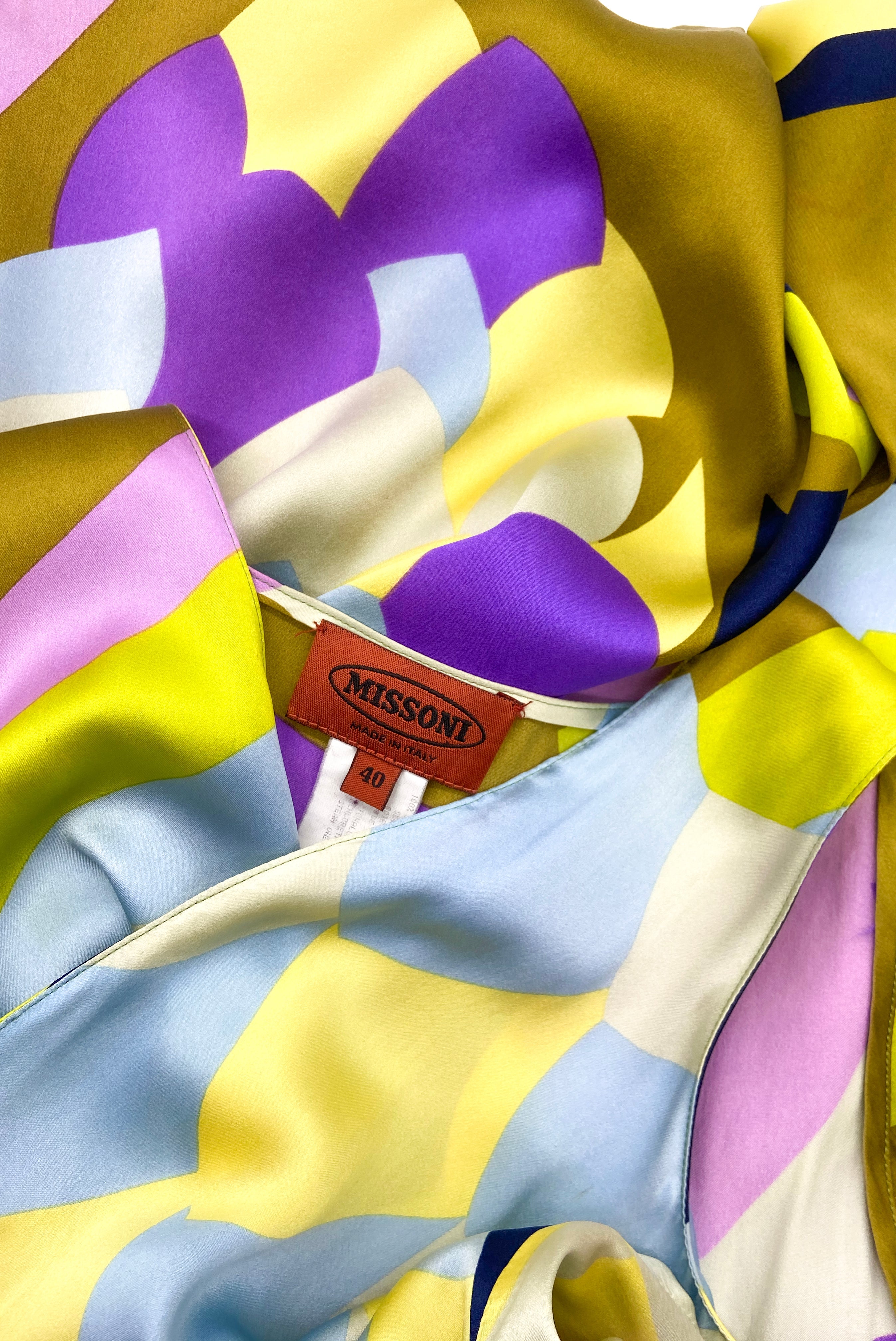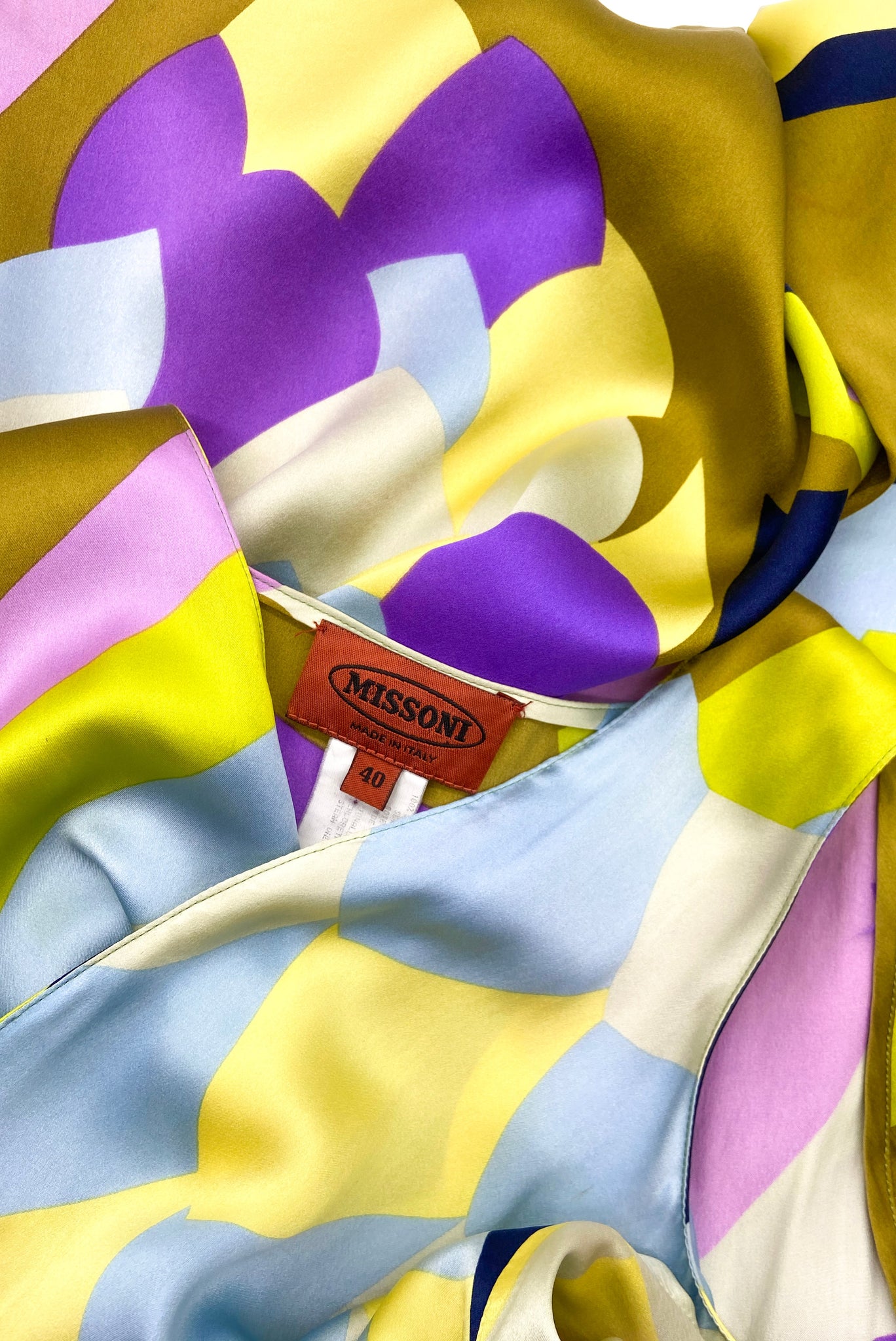 Missoni Multi-Color Geometric Retro Print Silk Wrap Disco Dress