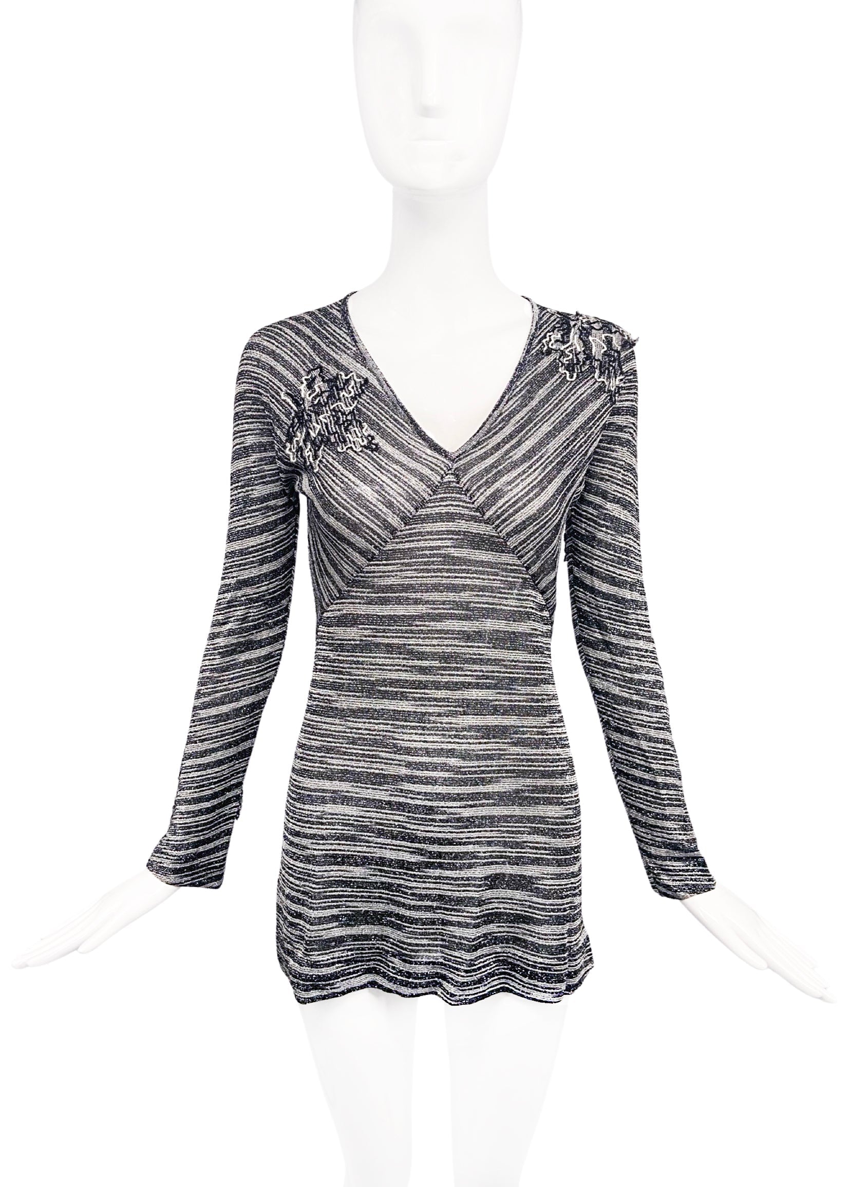 Missoni Silver Metallic Lurex Striped Floral Applicate Dress