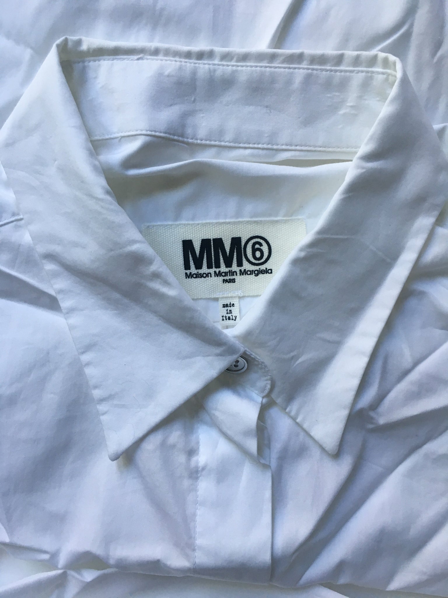 MM6 Margiela White Cotton Button Up Shirt with Elongated Sleeve