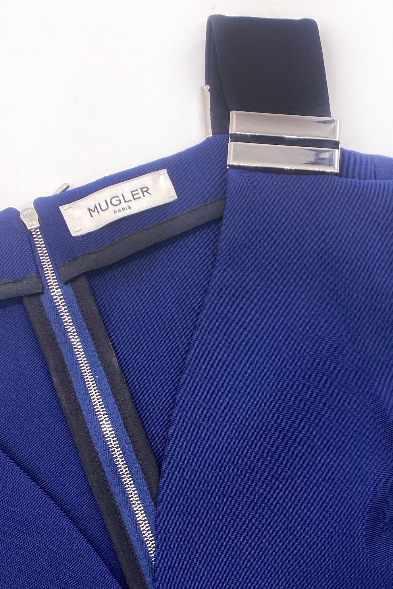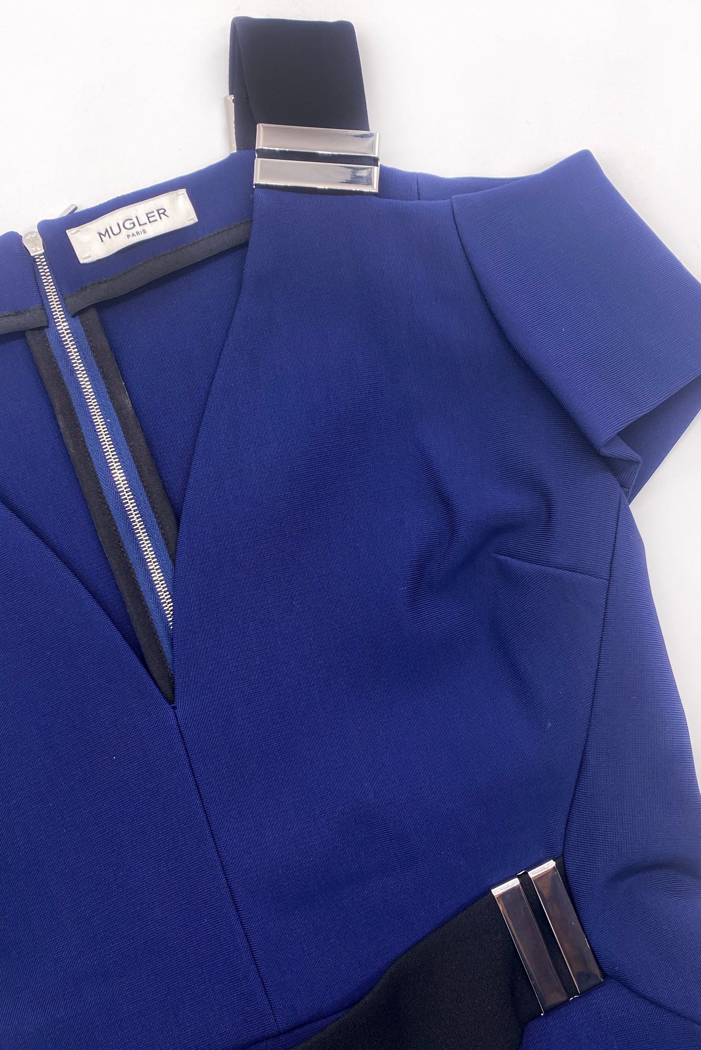 Mugler Navy Blue Mini Dress with Silver Hard Ware Details