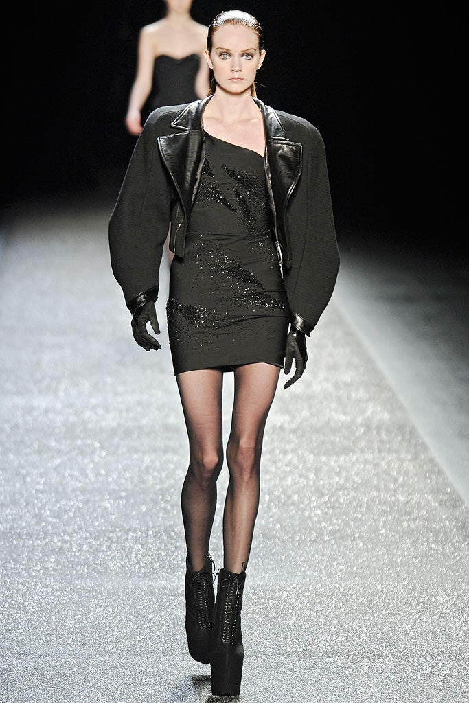 A red Nina Ricci one shoulder mini party dress. The dress has explosions of sparkling red crystals in wave like patterns down the dress. From the Nina Ricci by Olivier Theyskens Fall / Winter 2009 Ready-to-Wear collection. The very last collection Olivier Theyskens showed for the house of Nina Ricci.