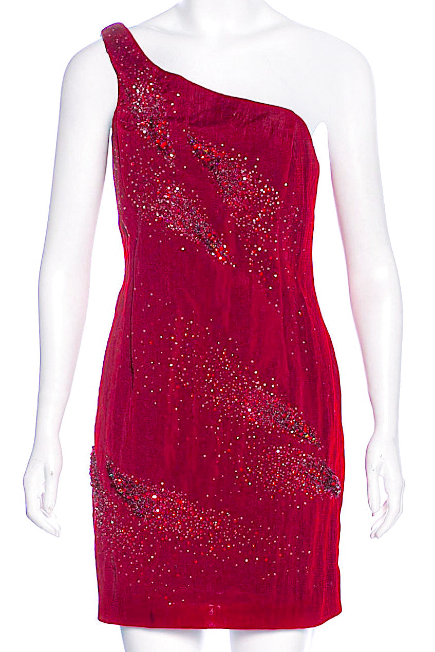 Nina Ricci Red One Shoulder Mini Dress with Crystal Embellishment FW2009