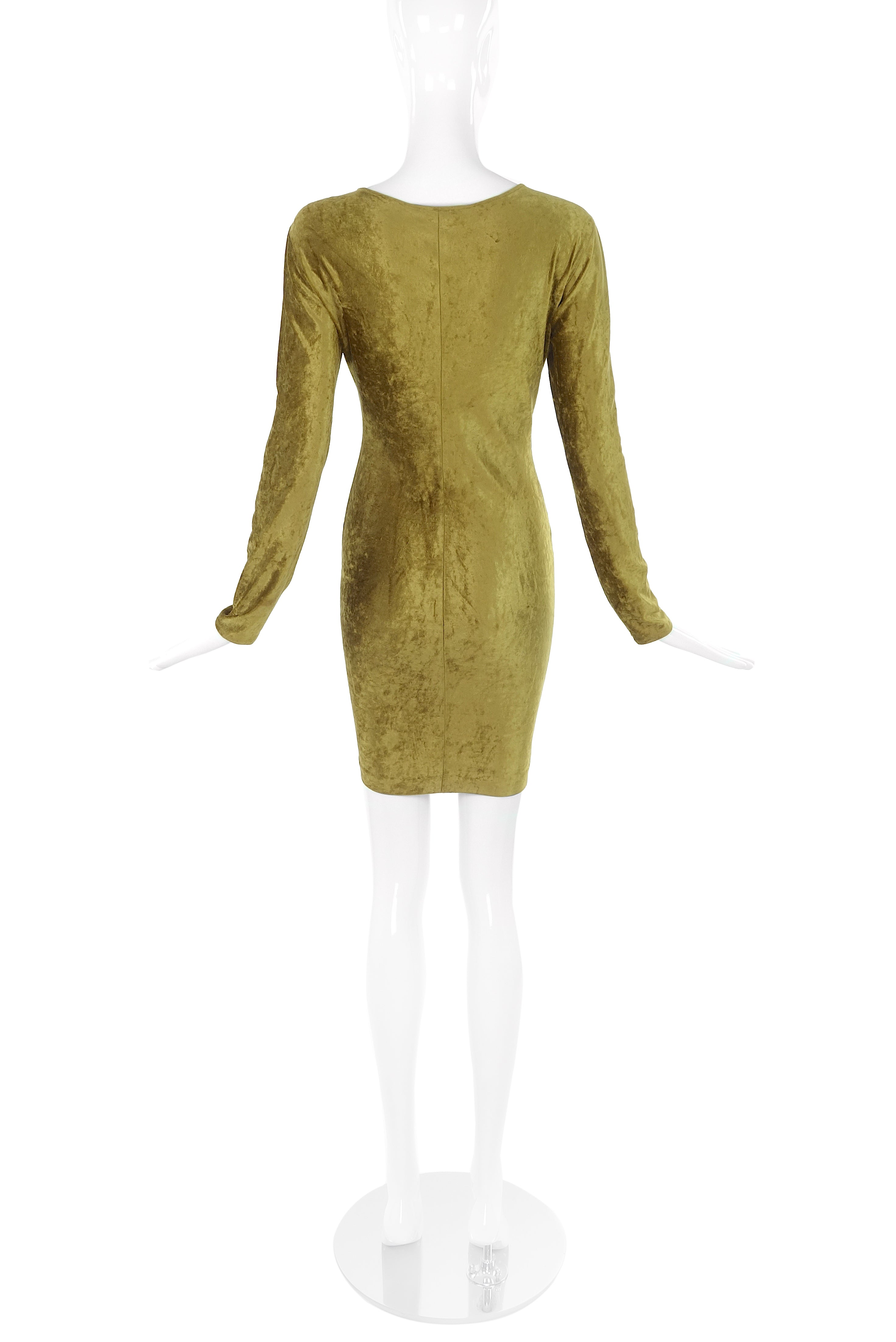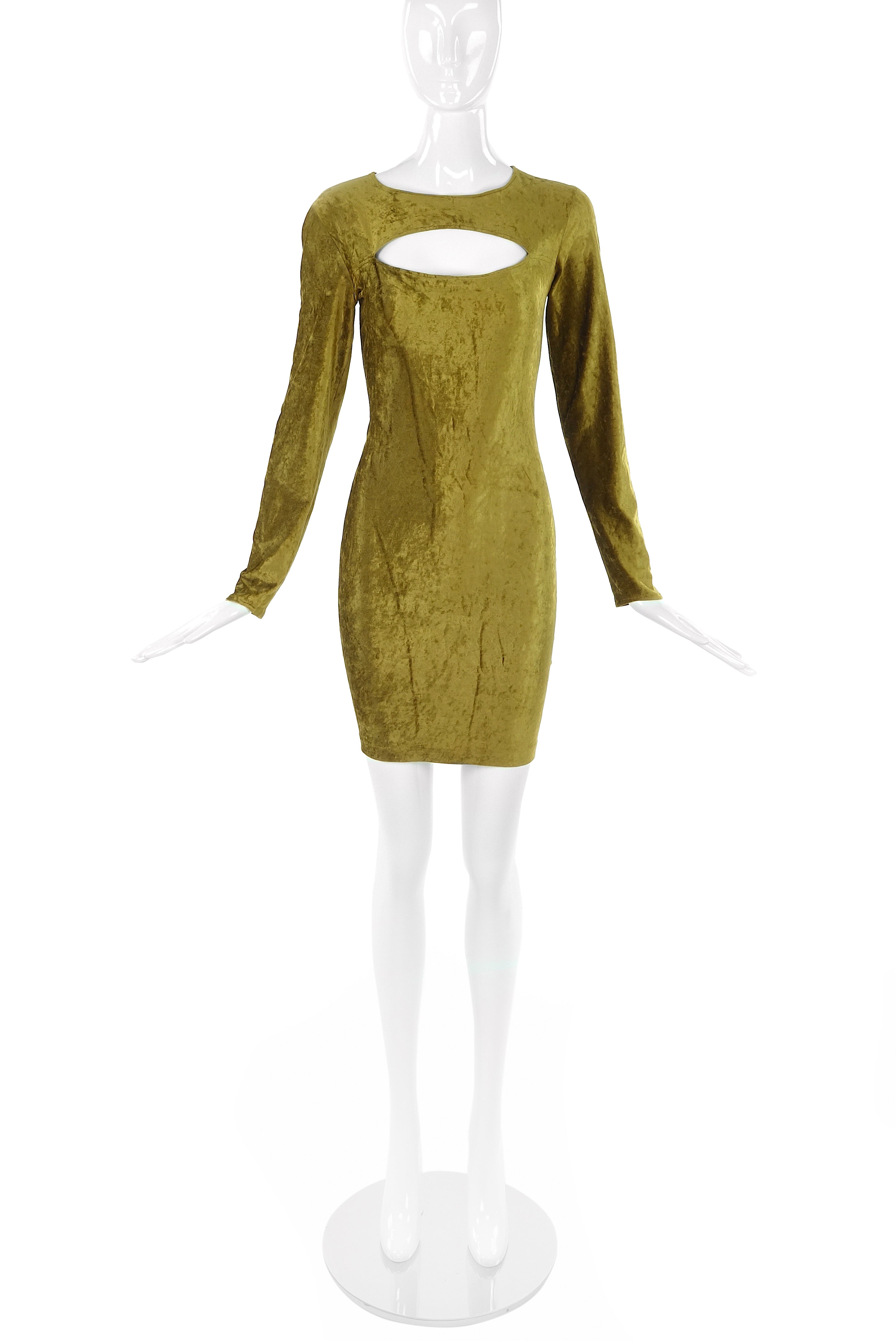 A late 1980s velvet mini dress with a cut-out by Norma Kamali.