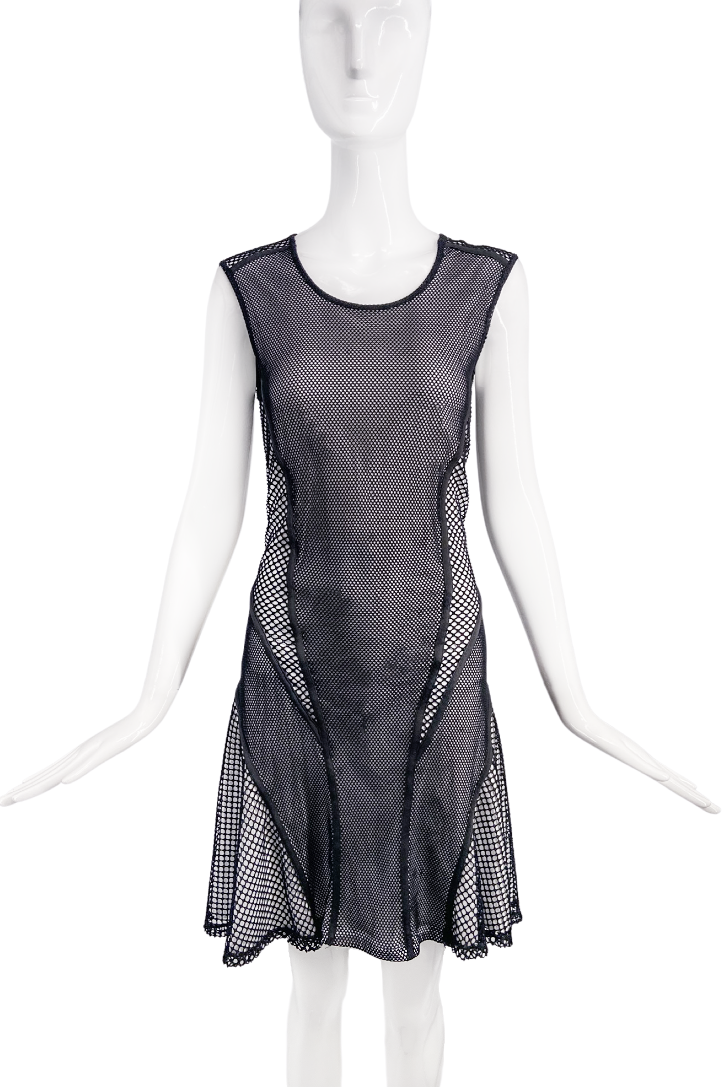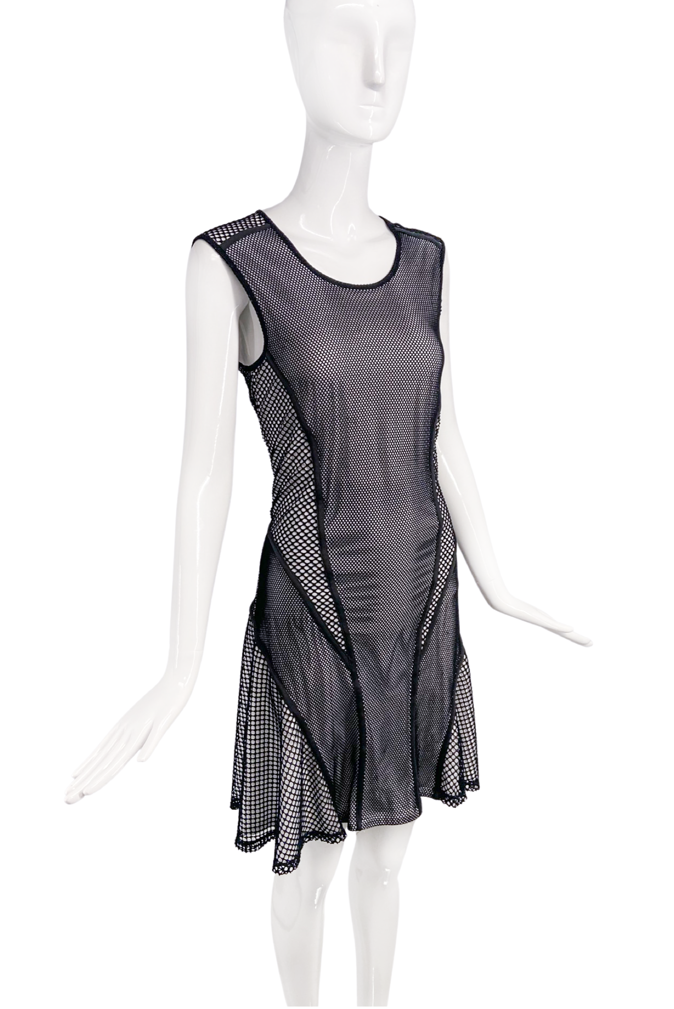 Ohne Titel Black & White Patchwork Fishnet Flared Dress