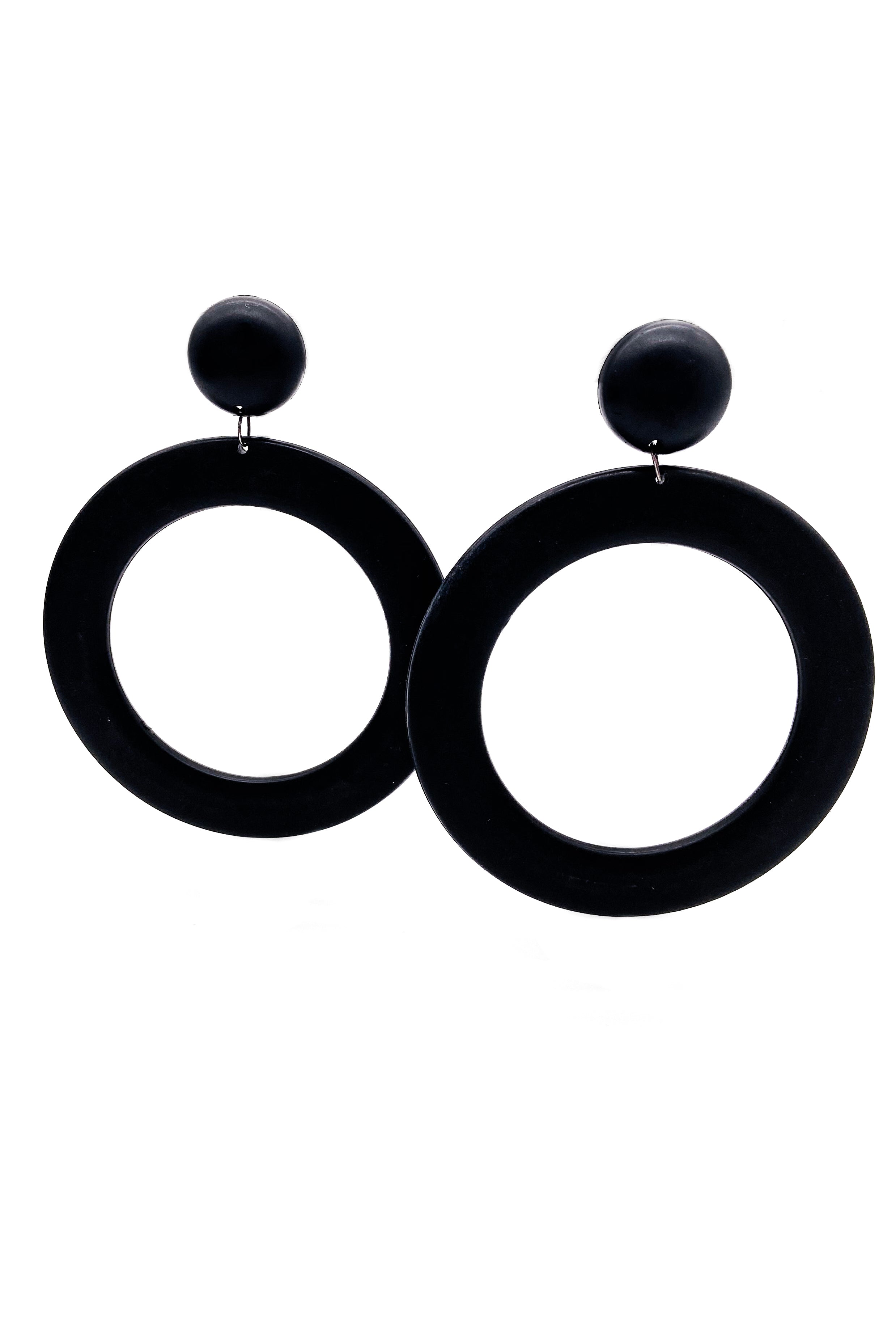 Oversized Black Matte Graphic Hoop Earrings