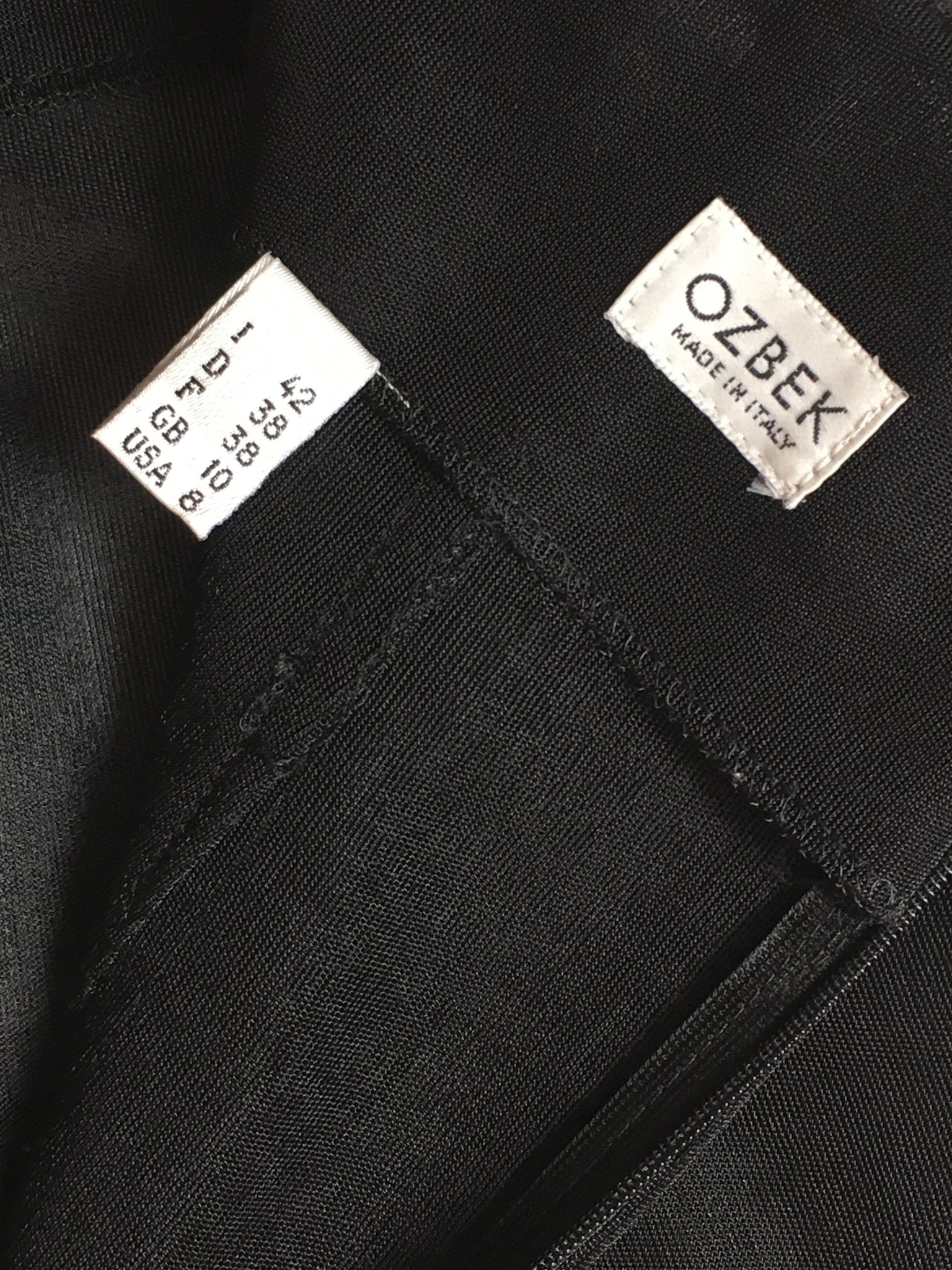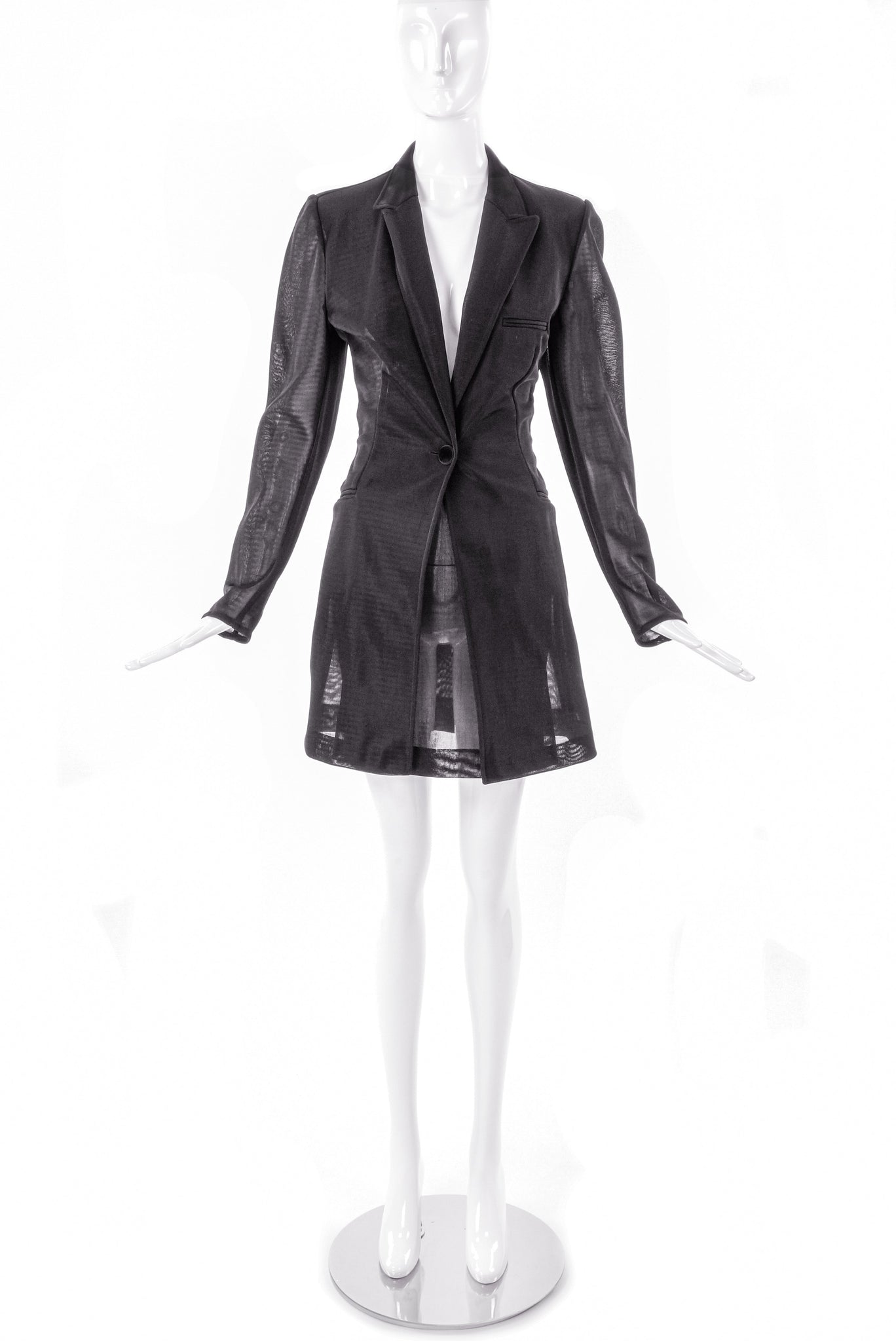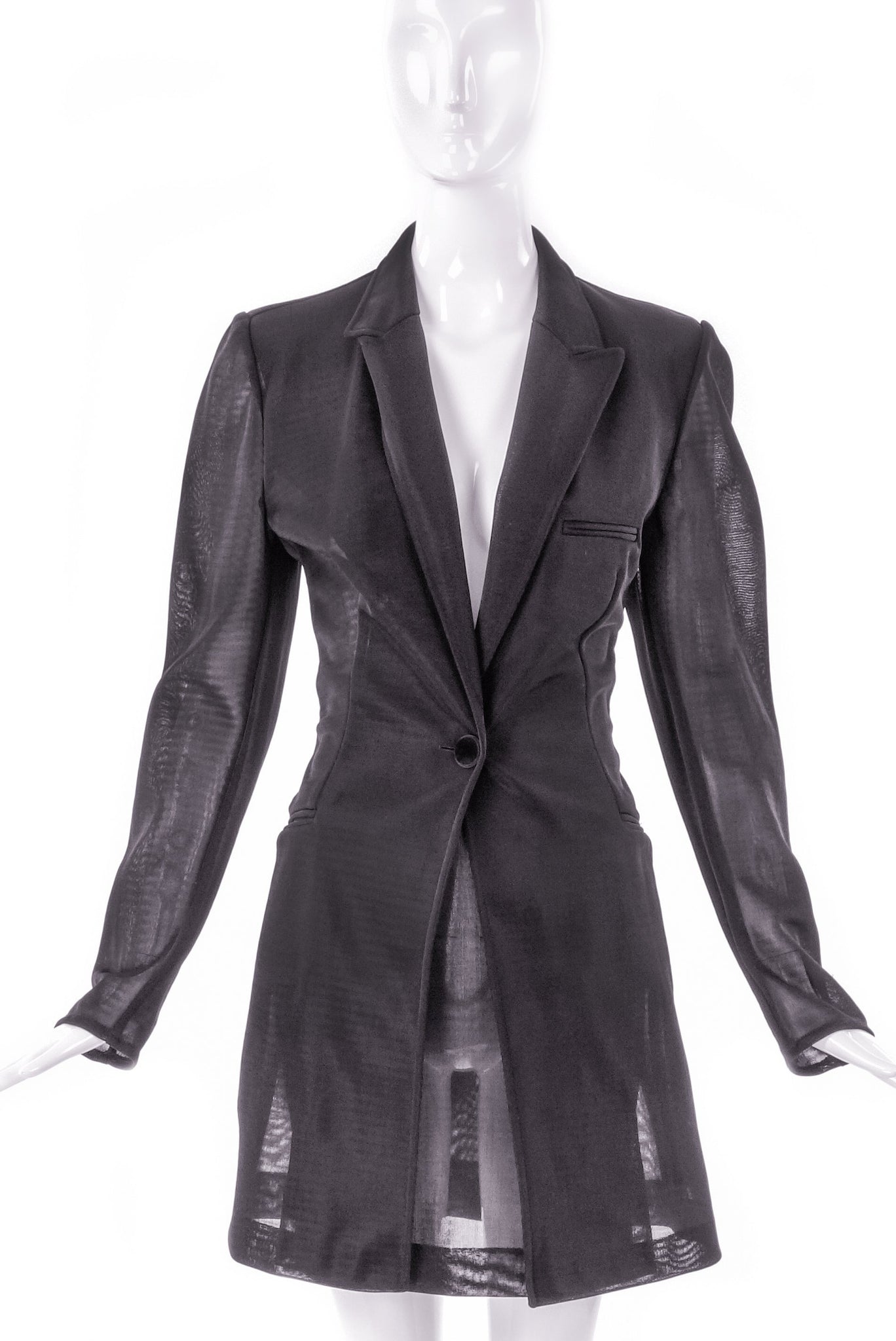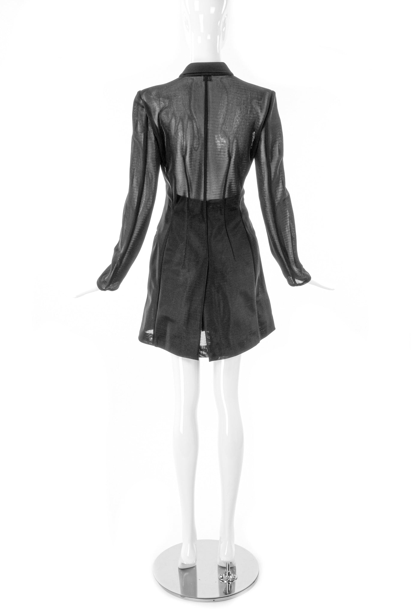 A Ozbek black sheer mesh tulle jacket and mini skirt suit.