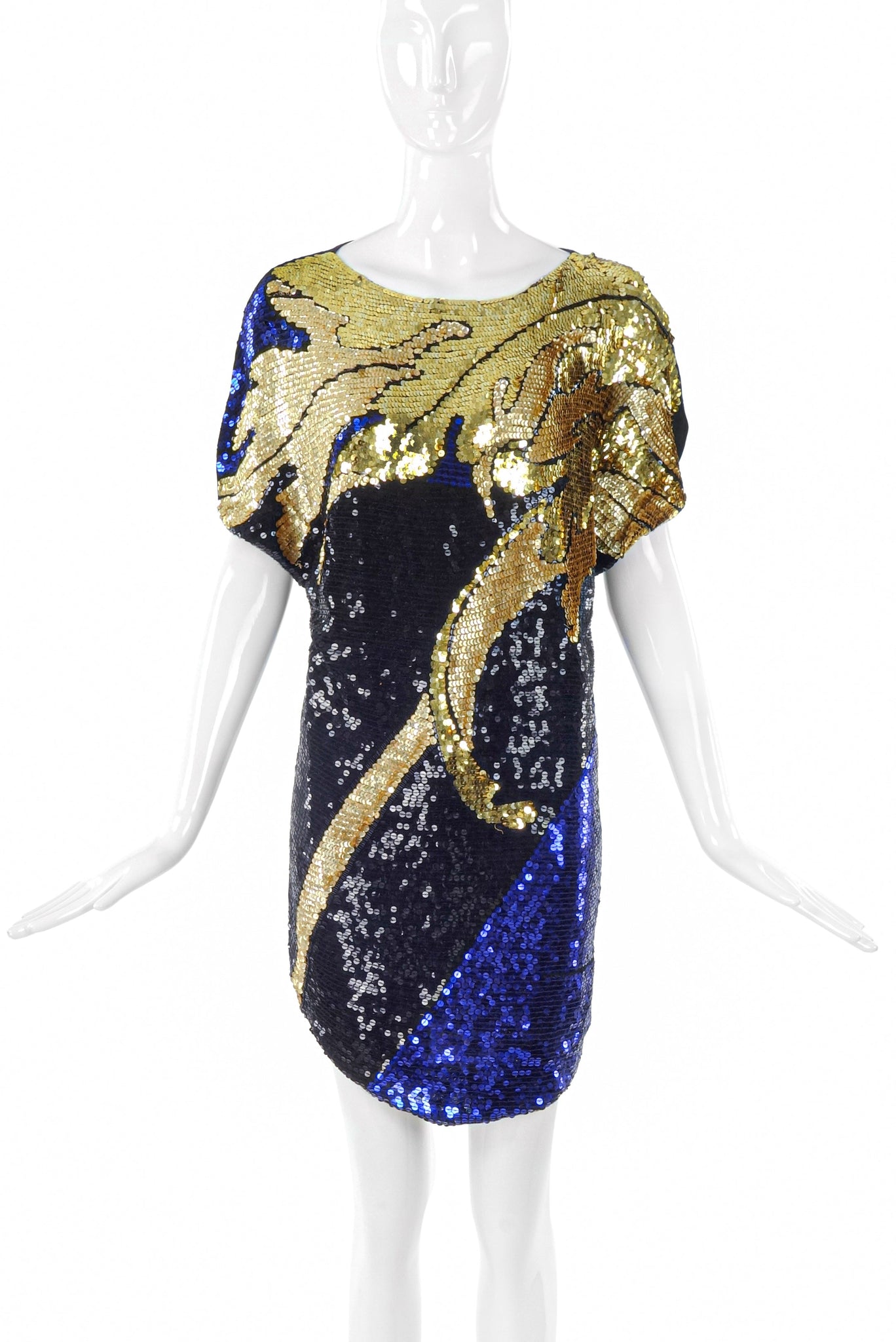 A t-shirt style blue and gold sequin shirt dress by vintage label Pepper Pistol.