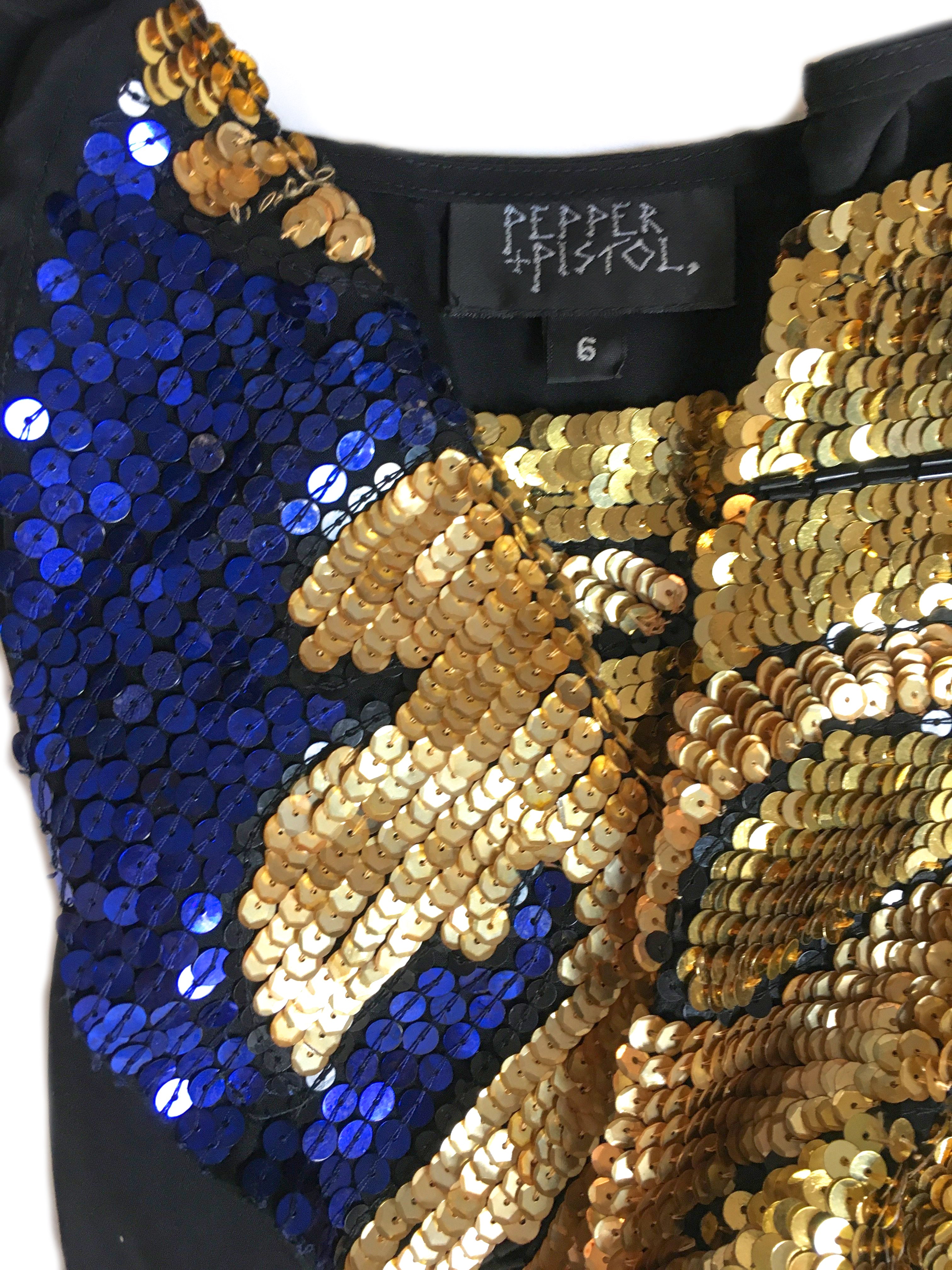 Pepper Pistol Gold and Blue Sequin Shirt Dress