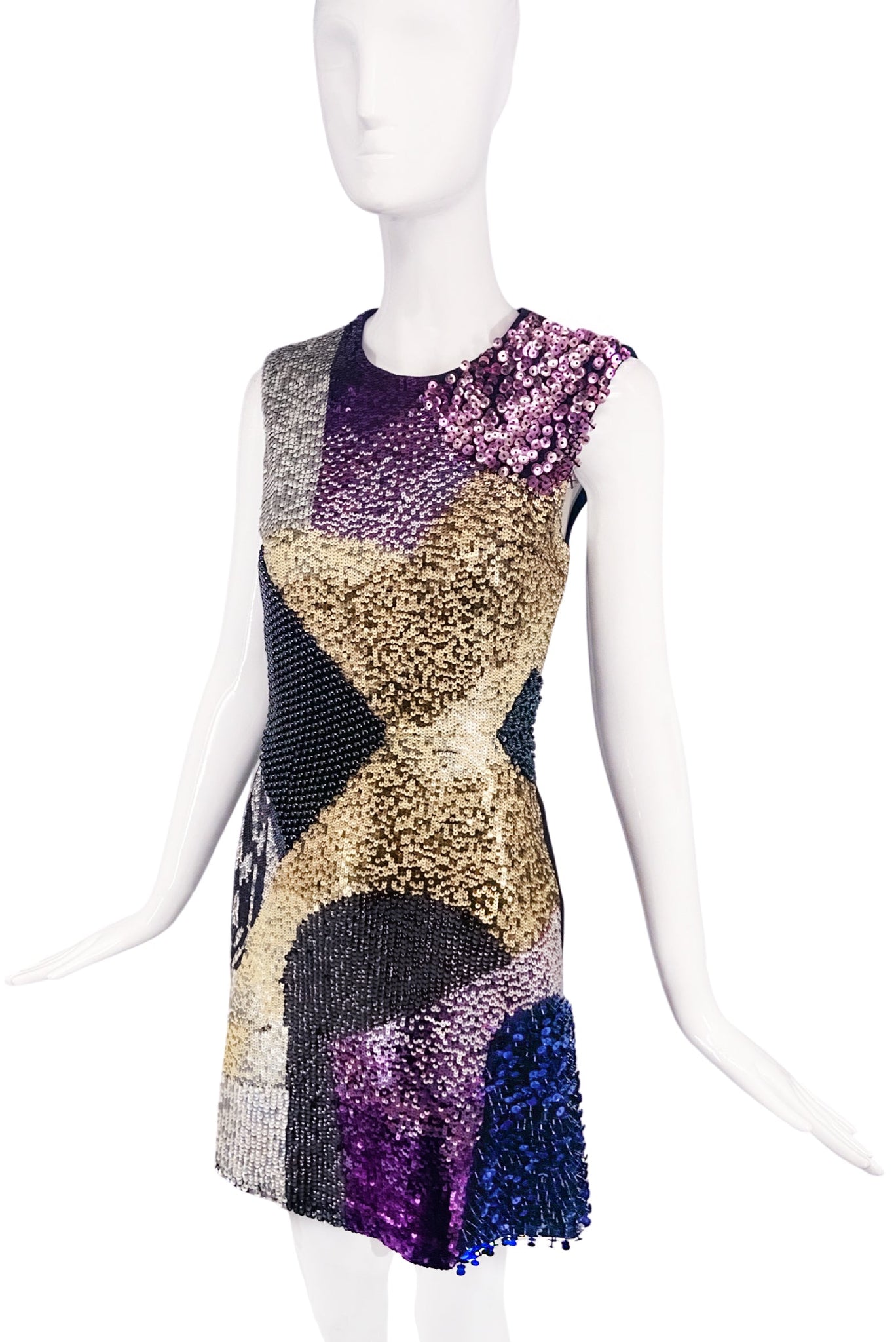 Philip Lim Multi color Gold Lavender Blue Silver Black Sequin Patchwork Dress