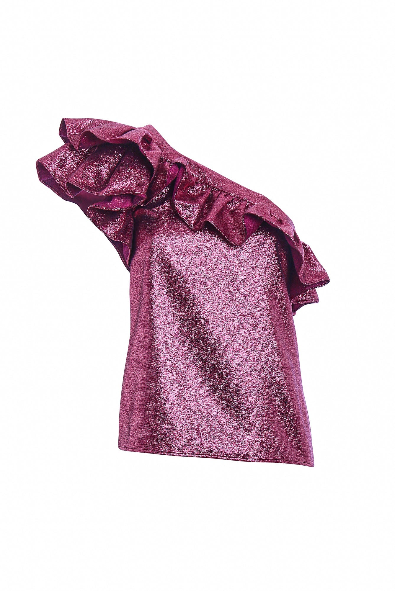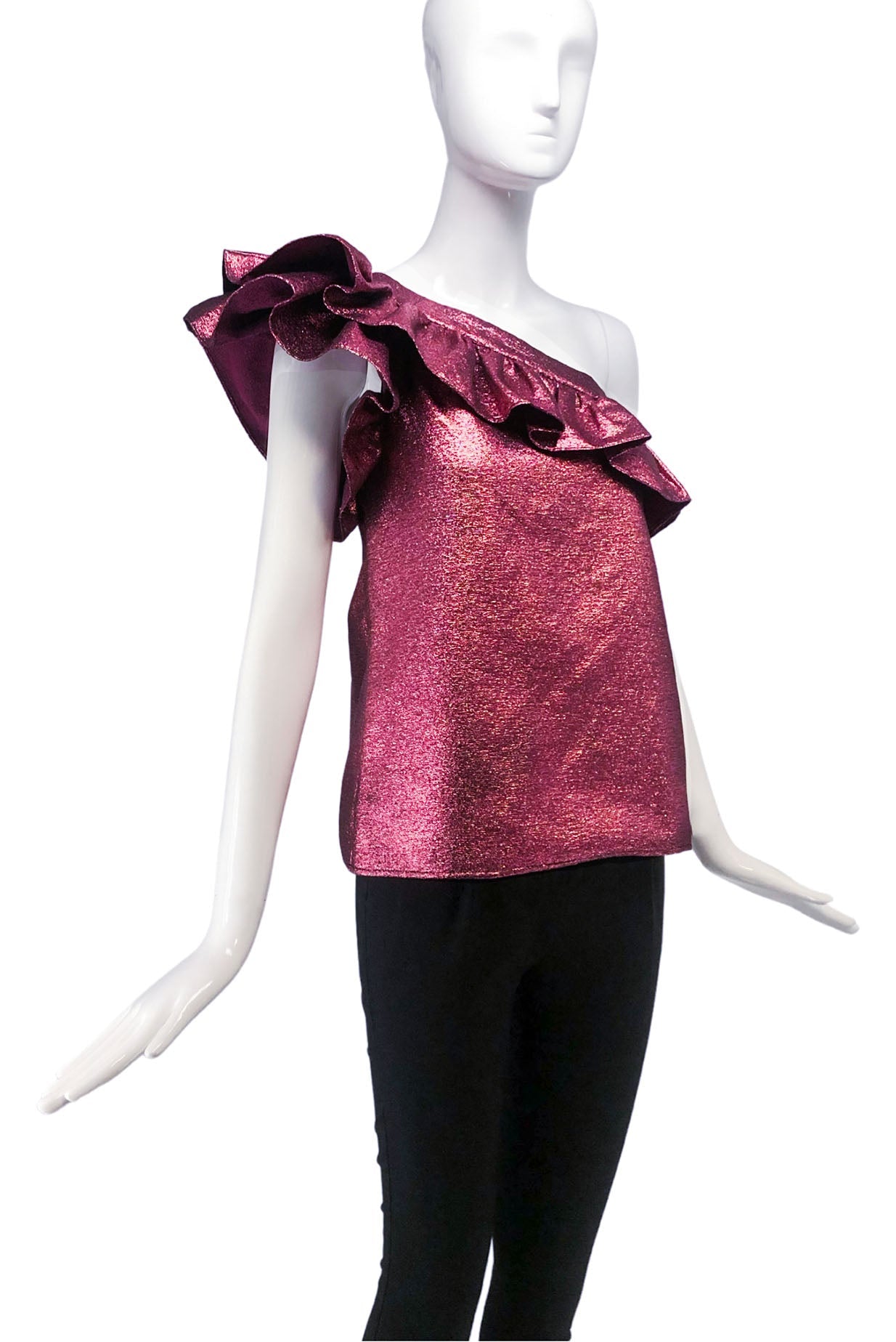 Philosophy di Lorenzo Serafini Purple Sparkle One Shoulder Ruffle Top