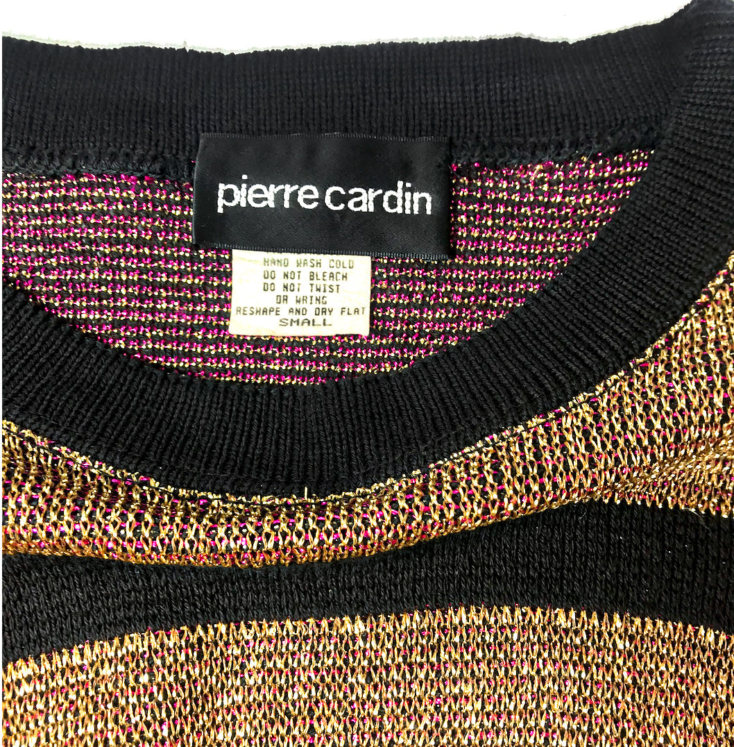 Pierre Cardin Gold and Pink Metallic Lurex Knit Mondrian Dress