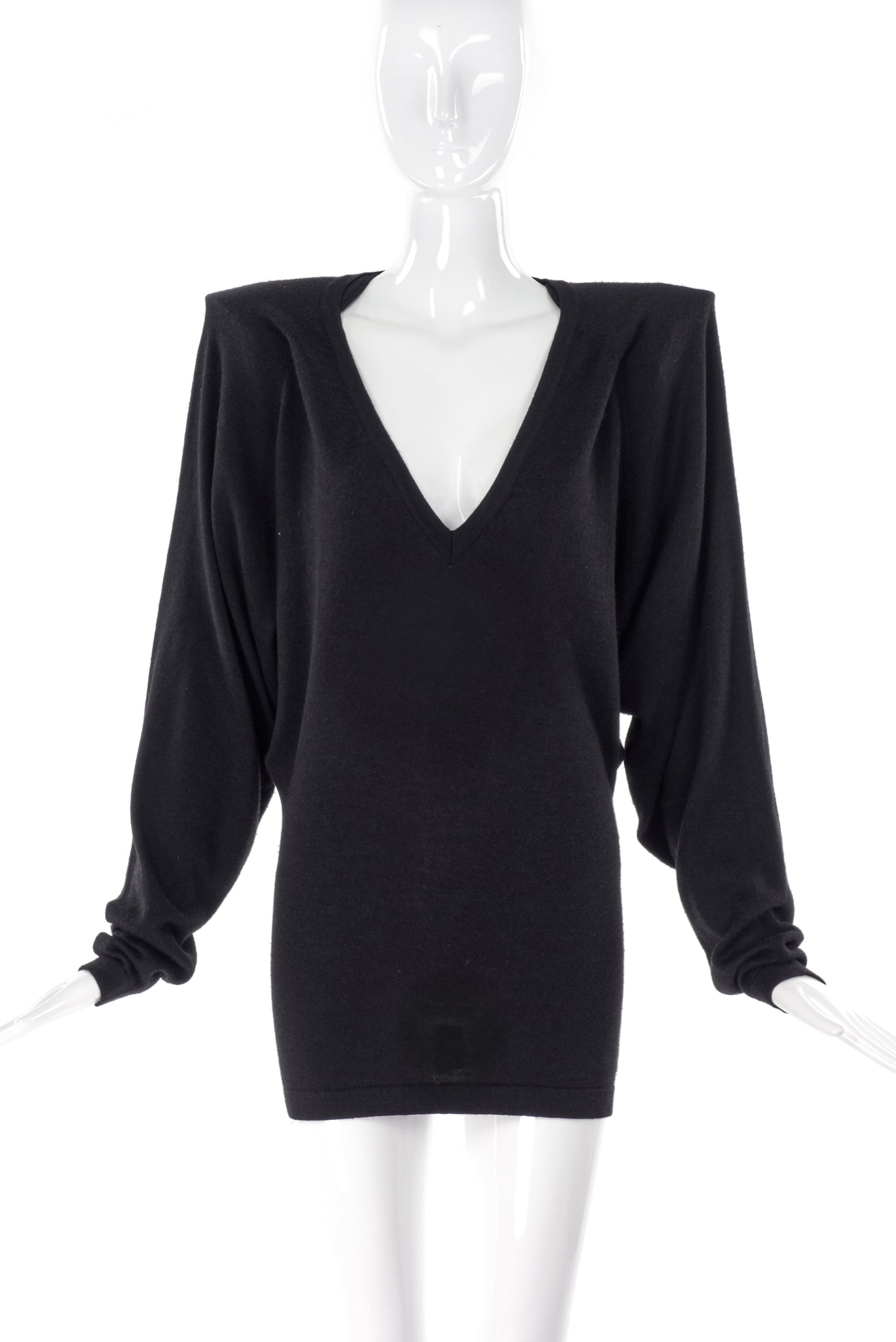From the Fall 2007 collection a v-neck sweater dress with build-in pointed shoulder pads.
