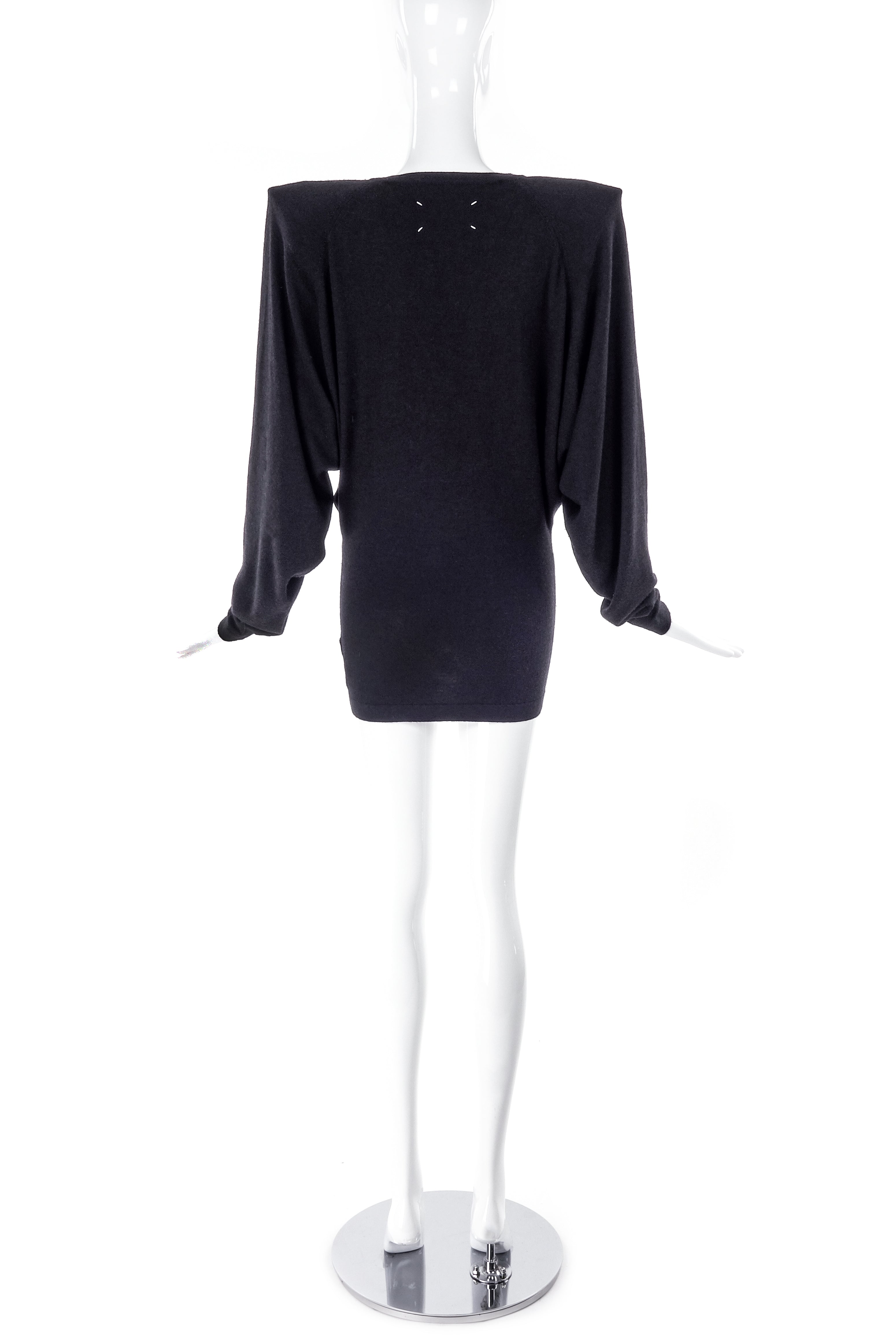 Maison Martin Margiela Pointed Shoulder Black V Neck Sweater Dress