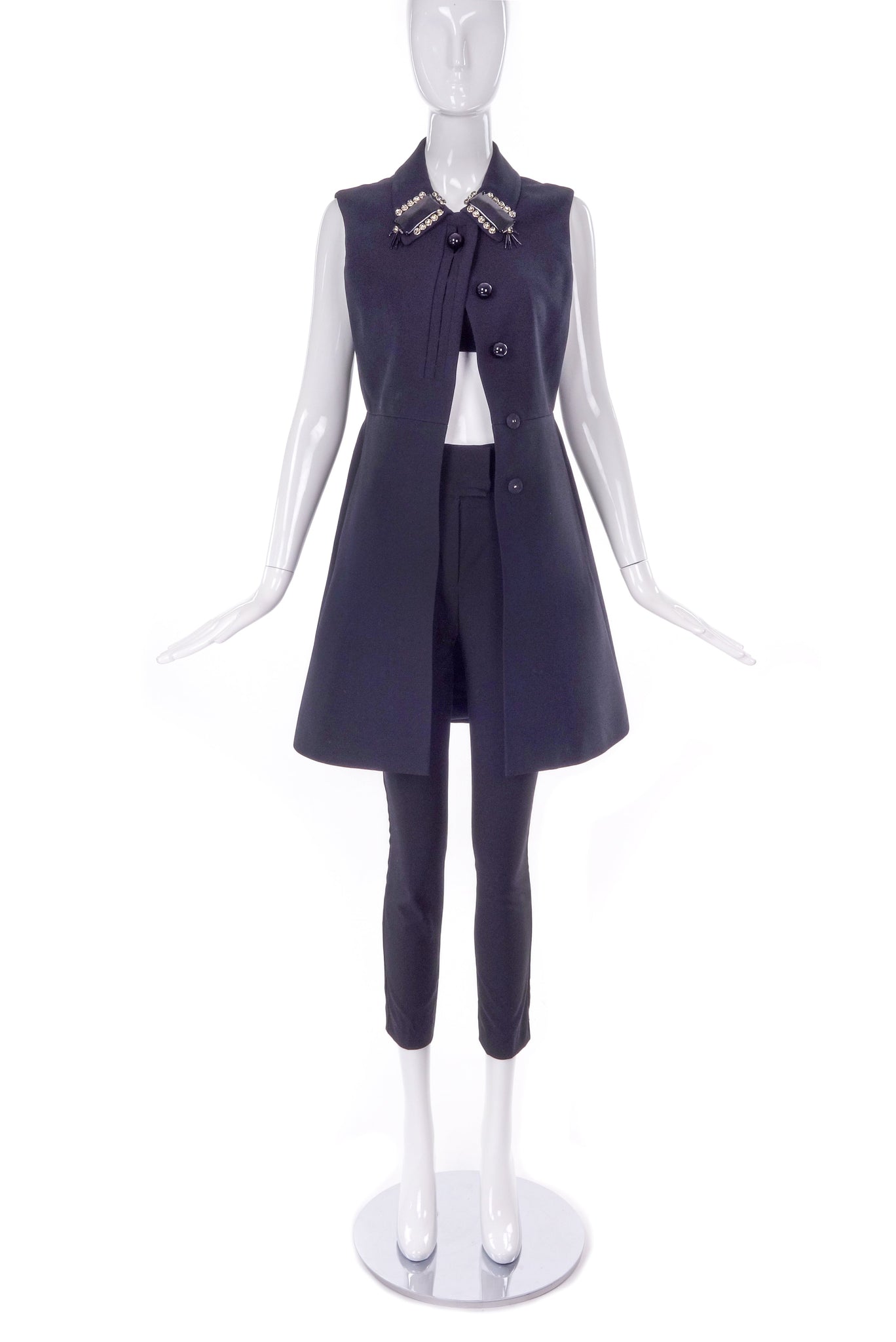 Prada Dress / Vest with Black And Crystal Collar Embellishments FW2012 - BOUTIQUE PURCHASE PRICE