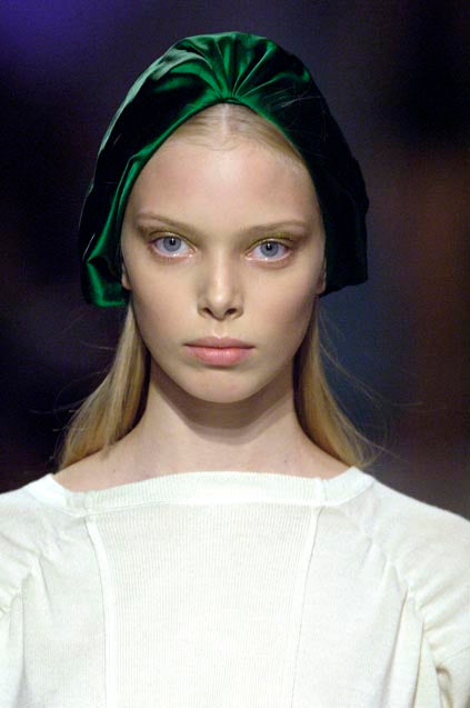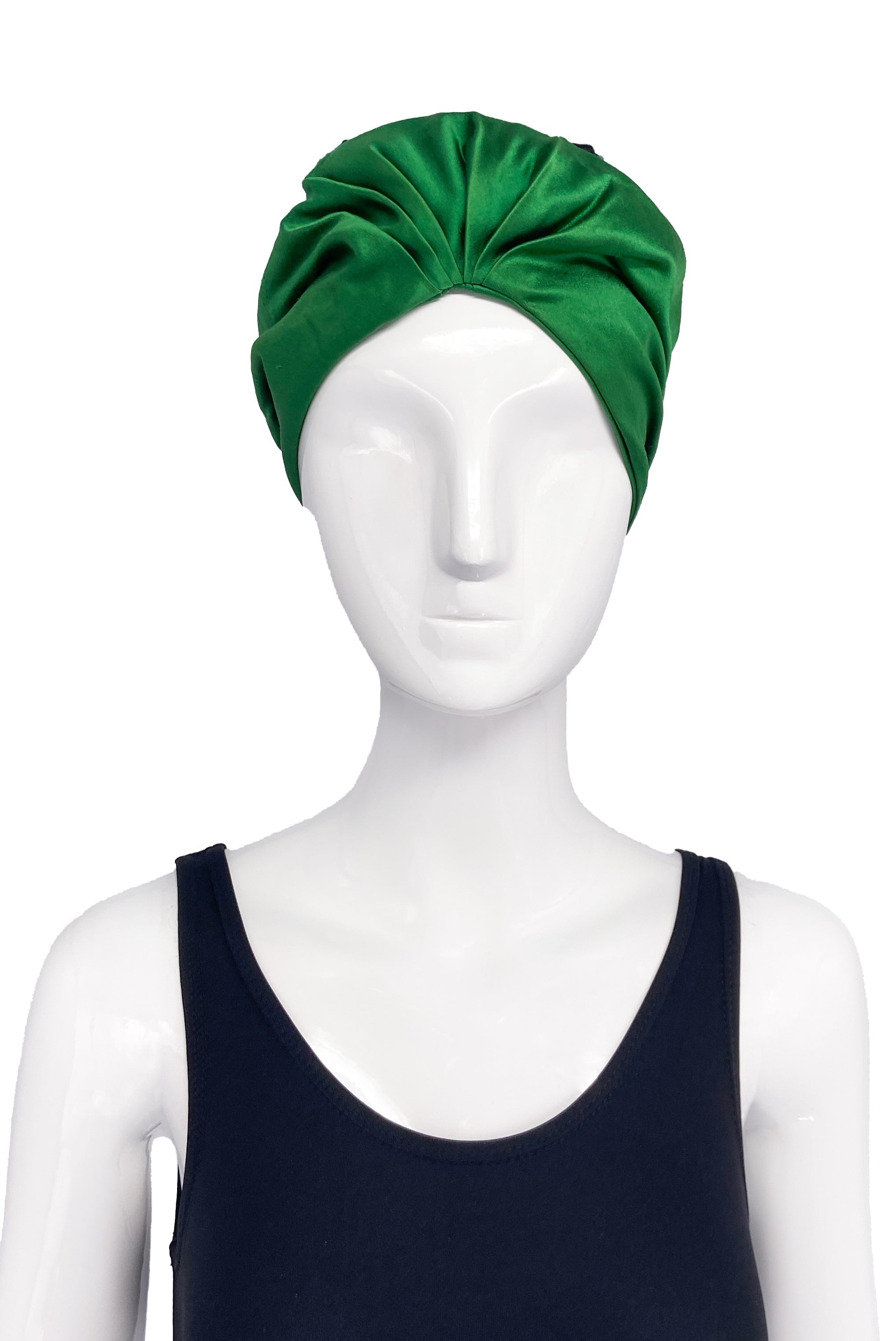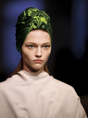 Prada emerald green satin turban from the Spring Summer 2007 runway show.